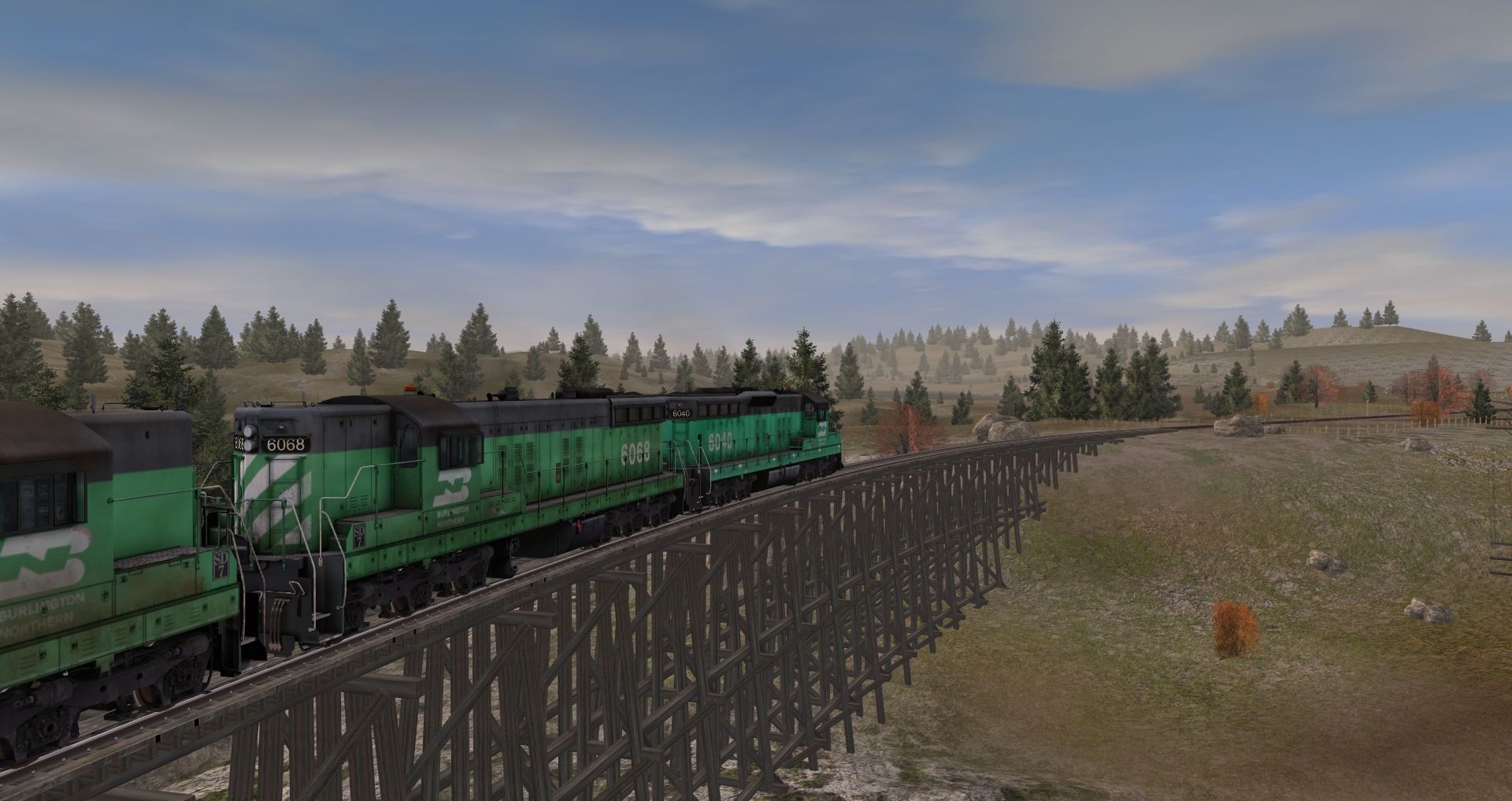 Tags: Trainz: A New Era, Legacy of the Burlington Northern v2, Coal delivery, BN SD7 high hood, BN SD7 low hood, BN 100 Ton Hopper, Invisible Train, BN Ce-11 Caboose, BN ACF Centerflow 3 Bay long hatch
