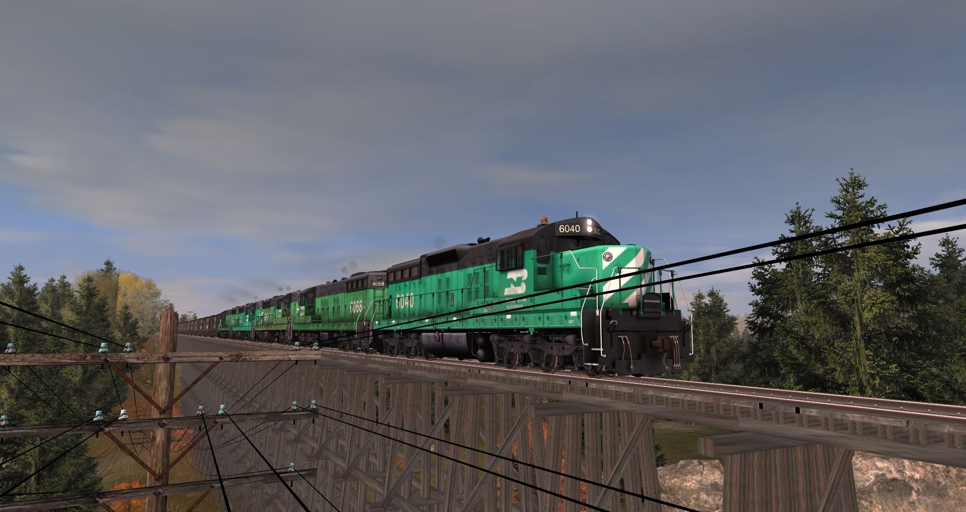 Tags: Trainz: A New Era, Legacy of the Burlington Northern v2, Coal delivery, BN SD7 low hood, BN SD7 high hood, BN 100 Ton Hopper, BN Ce-11 Caboose, Invisible Train