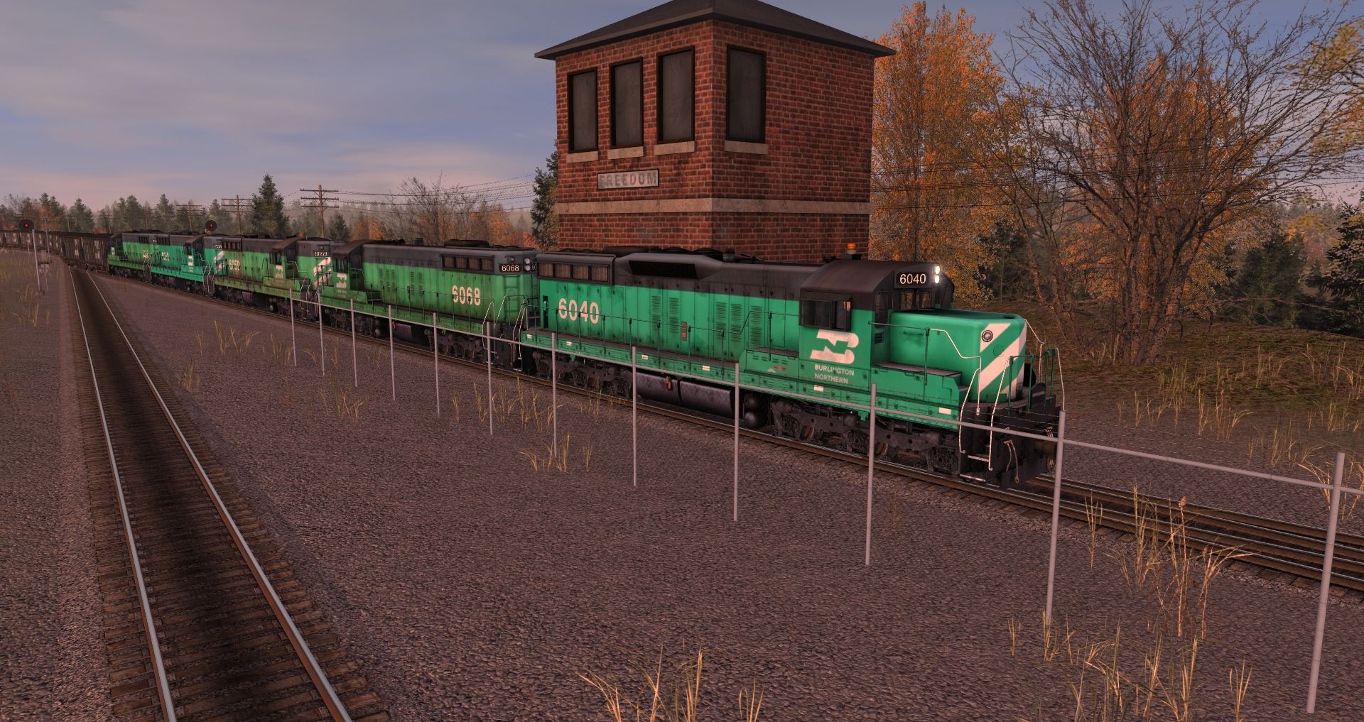 Tags: Trainz: A New Era, Legacy of the Burlington Northern v2, Coal delivery, BN SD7 low hood, BN SD7 high hood, BN 100 Ton Hopper, Invisible Train, BN Ce-11 Caboose, BN 50' RBL ex-CB&Q, BN 60ft Thrall Boxcar