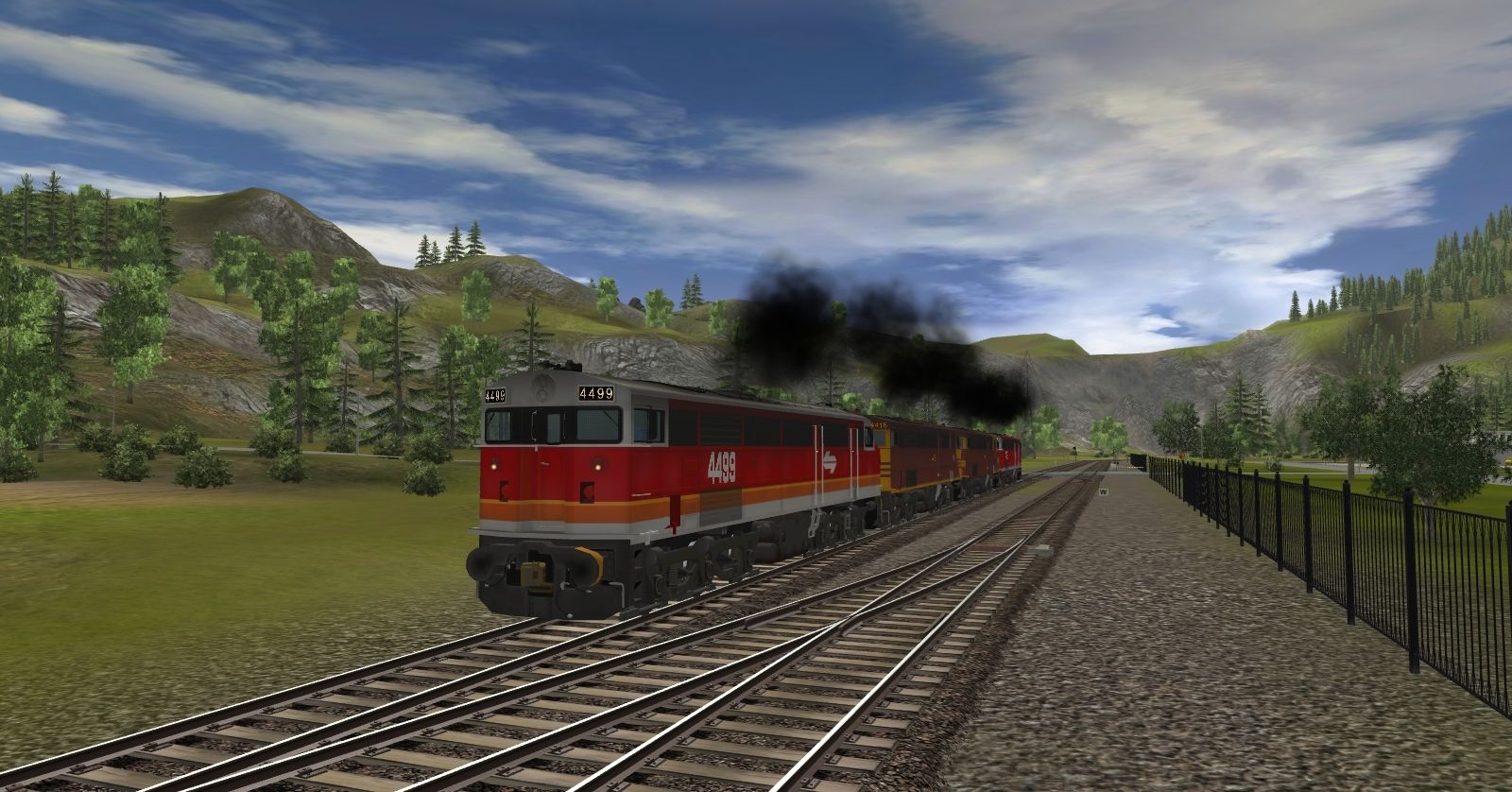 Posted by: Henboman34562 | Posted:2017-10-01 21:58:12 Caption: A lashup of 4x 44 classes give off an awesome smoke display as they roll their way back to the sheds. Tags: Trainz: A New Era