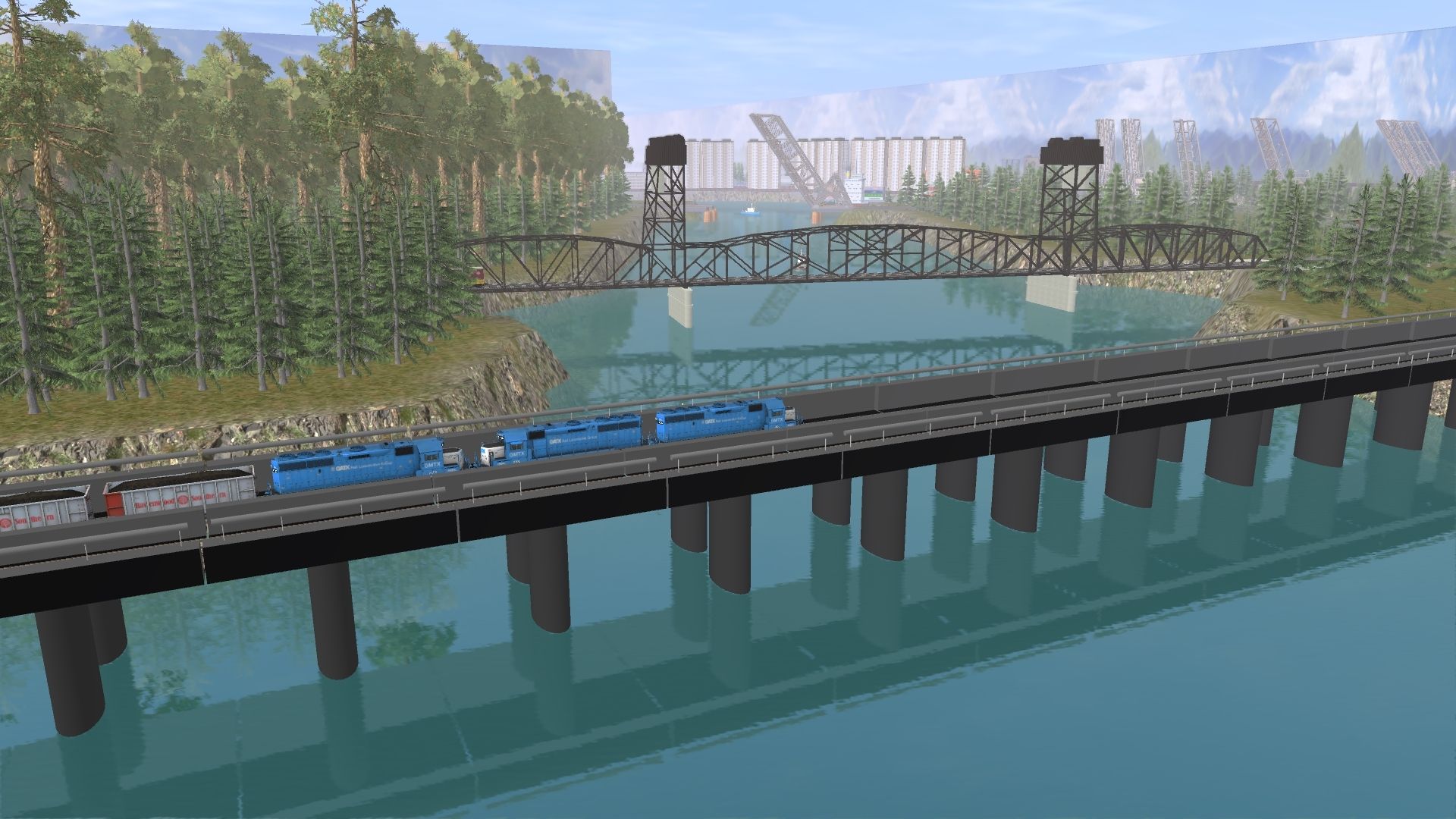 Tags: Trainz: A New Era, Water Route, Bridge Mania, GMTX GP40-2, Erie J-2 Engine V2, N&W J Class Engine, N&W A Class Engine V2, CP Rail SD40-2 - Weathered, Crane MOW ERIE 6523, Crane Tender Cupola ERIE MOW Cradle #, Logs 50ft Clinch, Erie J-2 Tender, N&W NS Powhatan Arrow 07 P4 Observation Lounge 581, N&W NS Powhatan Arrow 06 D1 Diner 492
