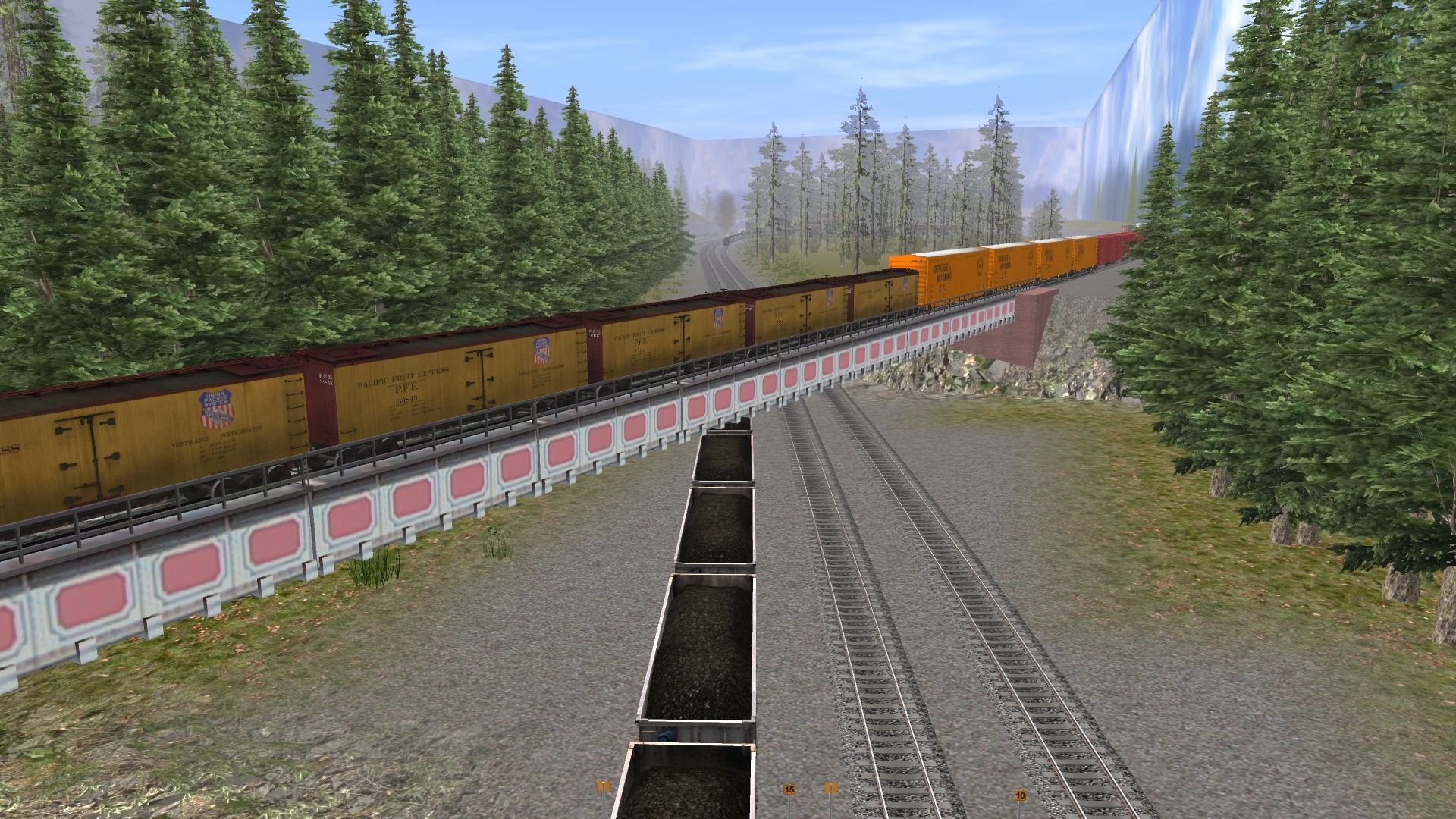 Tags: Trainz: A New Era, Water Route, Bridge Mania, ATSF C30-7, N&W A Class Engine V2, PFE R-40-2 Reefer Early, CHN C80 unit1B, Boxcar Berwick 50 ft Genesee and Wyoming DES, CHN C80 unit1A, CHN C80 unit1C, Boxcar 50 ft FMC 5283 cf BNSF DES, Boxcar Evans 53' Double-Plug-Door RPCX DES, Boxcar Waffle P-S ACF 50' CP Rail DES, Autorack TTGX - CP Rail Logo