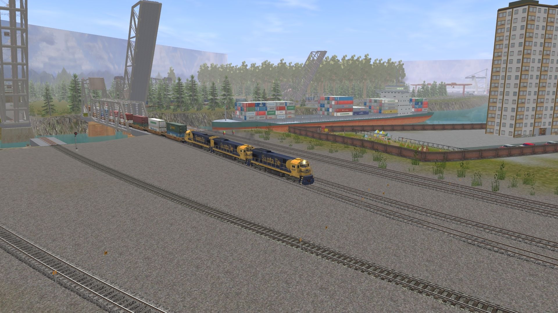 Tags: Trainz: A New Era, Water Route, Bridge Mania, ATSF C30-7, Erie J-2 Engine V2, SW1500 CSX 1100 single light, SW1500 CSX 1102 single light, N&W J Class Engine, CHN X2K container wagon yellow, Trinity 17600 gal Tank Car GATX ver 5 DES, Reefer trinity trincool 64ft CEFX DES, Erie J-2 Tender, Logs 50ft Clinch, Crane MOW ERIE 6523