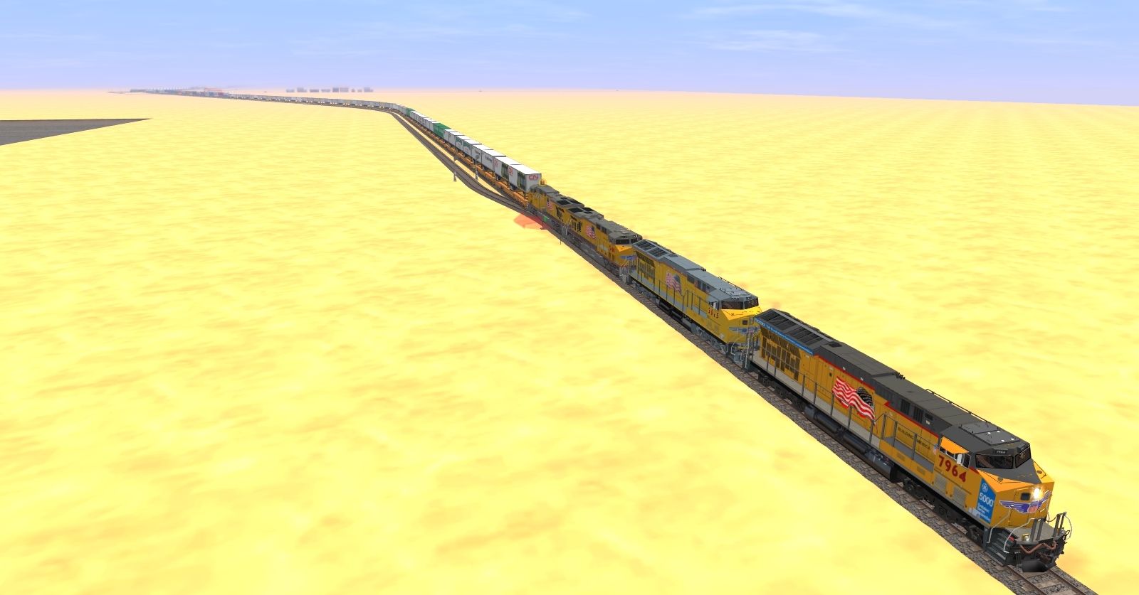 Tags: Trainz: A New Era, E Trains Railroad, E Trains RR - Tier 4 Operations, ES44AC Tier 4 Locomotive UP, ES44AC Tier 4 Locomotive UP 5000th, GE ES44AC UP 5353-5553 Weathered, GP38-2 BN White, Flatcar 89 ft TTX for Trailers DES, TTX 89ft TOFC Flatcar, TTX 53 Husky Stack, TTX 53 ft Wellcar, H43 3Bay Hopper Union Pacific s MFX#, H62R 4Bay Hopper Union Pacific bk2 MFX#, HP_50ft_Boxcar_BNSF_#07