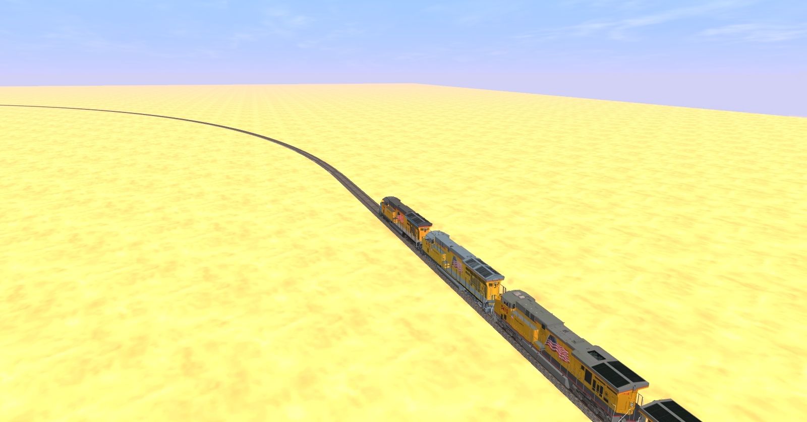 Tags: Trainz: A New Era, E Trains Railroad, E Trains RR - Tier 4 Operations, GE ES44AC UP 5353-5553 Weathered, ES44AC Tier 4 Locomotive UP, ES44AC Tier 4 Locomotive UP 5000th, Flatcar 89 ft TTX for Trailers DES, TTX 89ft TOFC Flatcar, TTX 53 Husky Stack