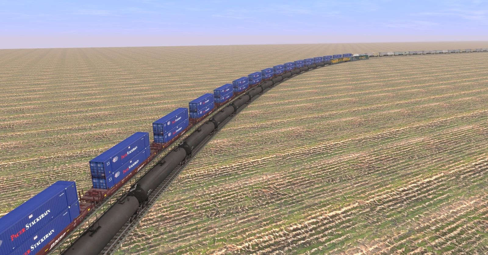 Tags: Trainz: A New Era, E Trains Railroad, E Trains RR - Tier 4 Operations, ES44AC Tier 4 Locomotive UP, EMD SD70ACE WP #1983, EMD SD70ACE CNW #1995, 53 ft Wellcar BNSF new logo 1, 53 ft Wellcar TTX NEW LOGO R/W STRIPE, TankTrain A, TankTrain B, FEC Green 89ft TOFC Flatcar, FRED UP
