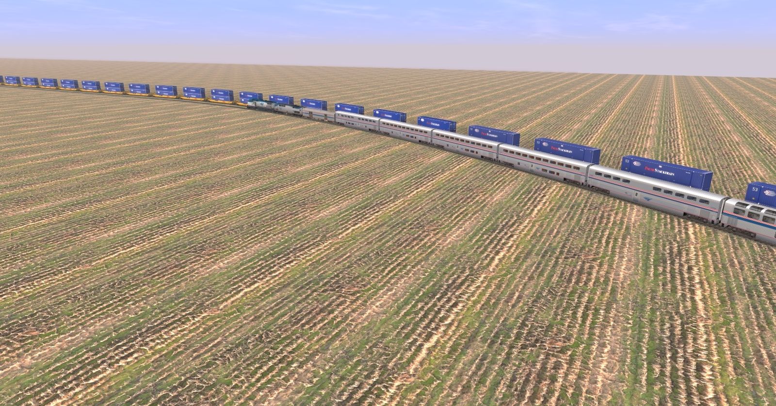 Tags: Trainz: A New Era, E Trains Railroad, E Trains RR - Tier 4 Operations, AMTK P42DC ph V, Amtrak P32-8BWH Ph V, GE ES44AC UP 5353-5553 Weathered, ES44AC Tier 4 Locomotive UP, ES44AC Tier 4 Locomotive UP 5000th, Amtrak IVb Coach Superliner, Amtrak IVb CoachBag Superliner, Amtrak IVb Pacific Parlour, Amtrak IVb DinerL Superliner, 53 ft Wellcar BNSF new logo 1, Amtrak IVb Sleeper Superliner