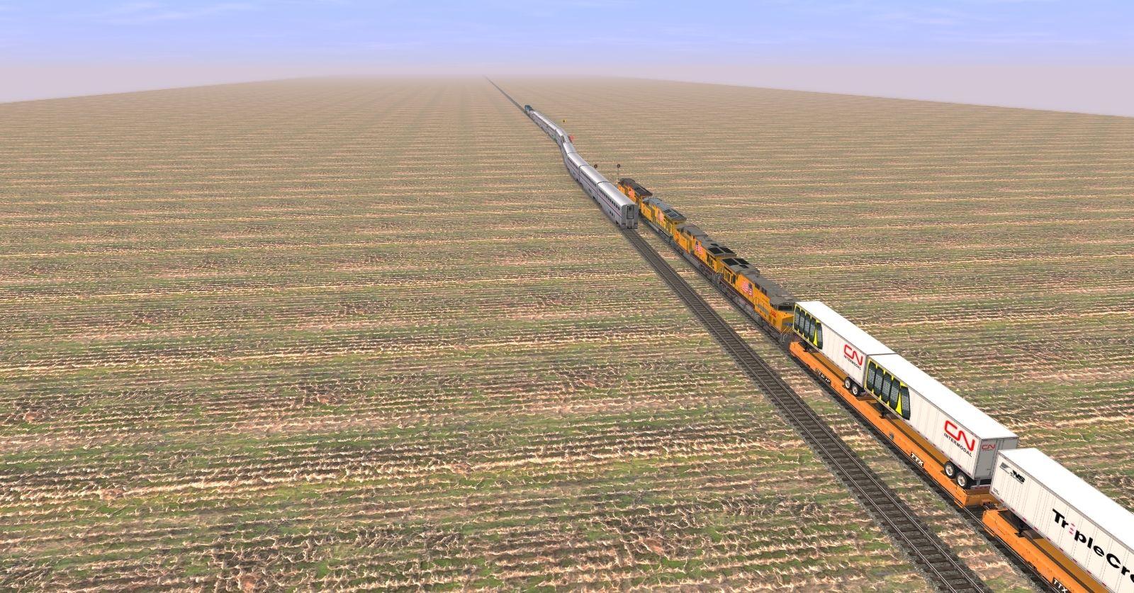 Tags: Trainz: A New Era, E Trains Railroad, E Trains RR - Tier 4 Operations, GE ES44AC UP 5353-5553 Weathered, ES44AC Tier 4 Locomotive UP, ES44AC Tier 4 Locomotive UP 5000th, AMTK P42DC ph V, Amtrak P32-8BWH Ph V, Flatcar 89 ft TTX for Trailers DES, Amtrak IVb Coach Superliner, TTX 89ft TOFC Flatcar, Amtrak IVb CoachBag Superliner, Amtrak IVb Pacific Parlour, Amtrak IVb DinerL Superliner