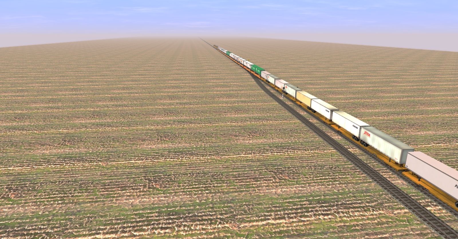 Tags: Trainz: A New Era, E Trains Railroad, E Trains RR - Tier 4 Operations, GE ES44AC UP 5353-5553 Weathered, ES44AC Tier 4 Locomotive UP, ES44AC Tier 4 Locomotive UP 5000th, AMTK P42DC ph V, Amtrak P32-8BWH Ph V, TTX 89ft TOFC Flatcar, TTX 53 Husky Stack, Flatcar 89 ft TTX for Trailers DES, TTX 53 ft Wellcar, TTX Econo A, TTX Econo B