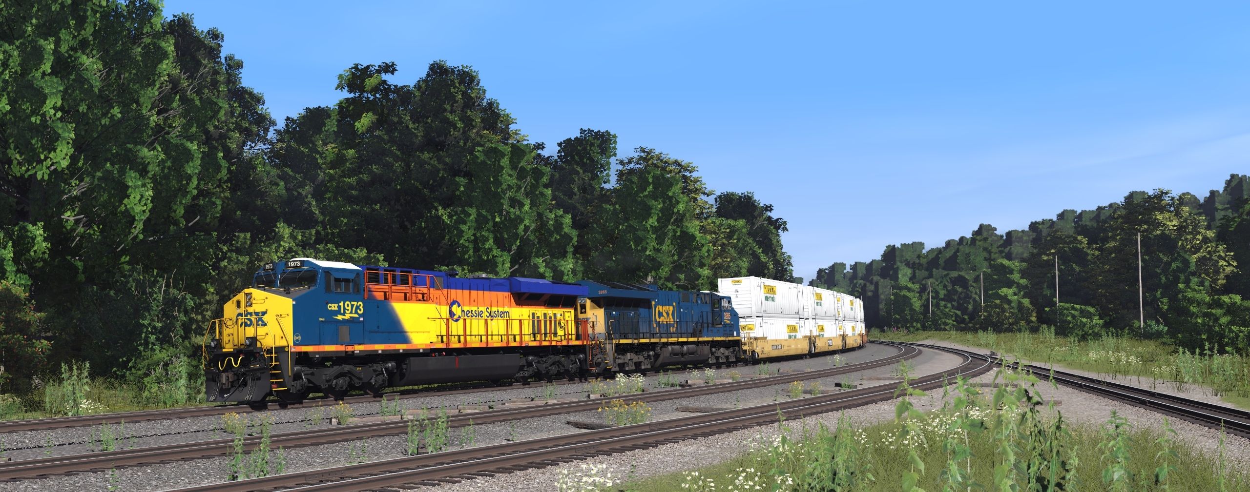 Tags: Trainz Railroad Simulator 2022, Mountain route, Default, CSX ES44AH Chessie System Heritage, CSX ET44AH, NS SD40-2 2a1, GMTX GP40-2, NS B40-8, CSX GP40-2 YN3, CSX GP38-2 YN-1 (ex-SCL), GWG33: DTTX 723002 B, GWG33: DTTX 723002 C, TTX 40ft Thrall Well Car C, TTX 40ft Thrall Well Car A 748185