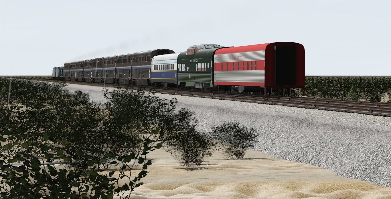 Tags: Trainz Railroad Simulator 2022, Generic Desert Route, BNSF Scenes - Early October 2018, A_Camera_00, AMTK P42DC ph V, BTVFD MKT Texas Special Coach, NP Budd Dome Buffet, AOE 800668 Crew Sleeper 'Grand Canyon, Amtrak Superliner I Coach Baggage, Amtrak Superliner II Coach, Amtrak Superliner II Lounge, Amtrak Superliner II Diner, Amtrak Superliner II Sleeper, Amtrak Superliner II Transition Sleeper