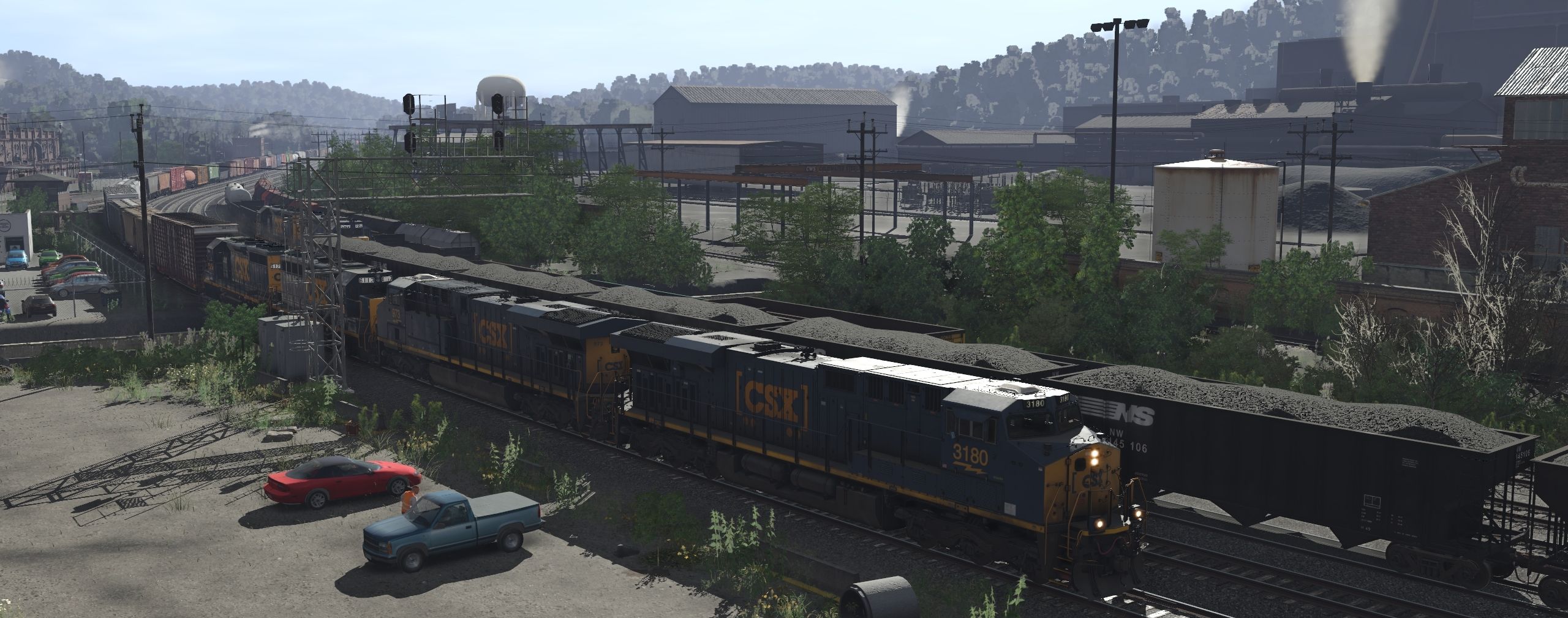 Tags: Trainz Railroad Simulator 2022, Mountain route, Default, CSX ES44AH, CSX ES44AH Early, CSX GP38-2 YN-1 (ex-SCL), CSX GP40-2 YN3, GMTX GP40-2, NS B40-8, NS SD40-2 2a1, CSX ES44AH SCL Heritage, NS 100 Ton Hopper, BN Greenville Gondola #566032, P&LE Greenville Gondola