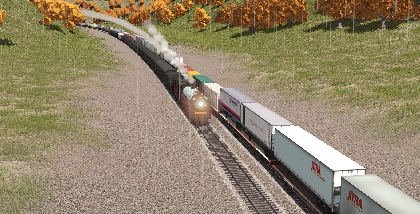 Tags: Trainz Railroad Simulator 2022, Hawin Lake NC (V2), NS Steam Scenes - Mid November 1980, CP H1c 2839 Engine V4, SOU GP38AC (CNO&TP), SOU GP38AC 2823-2836, SOU GP38 (C&NW), SOU GP38 (CNO&TP), MEC 89ft AP TOFC Flatcar ex-PW, CP H1c 2839 Tender V4, L&N 1951 Tender, TTX Patched 89ft TOFC Flatcar, Southern Coach 726 Man O War, Southern Coach 1067 Archroof
