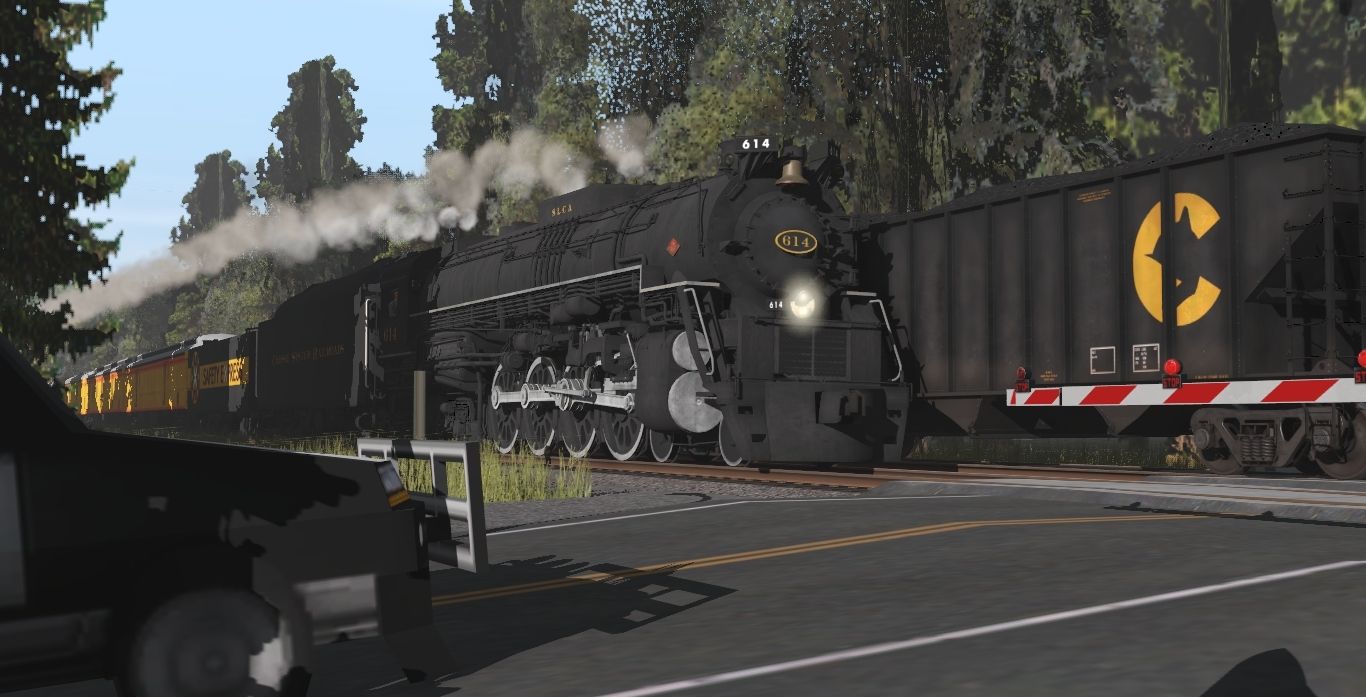 Tags: Trainz Railroad Simulator 2022, Forest Railroad Crossing for Railfanning, Chessie Steam Scenes - Late June 1981, Chessie Safety Express Engine, EMD SD40 B&O #7597, EMD SD40 C&O #7548, Chessie SD40 WM#7596, EMD SD40 B&O #7592, Chessie SD40 B&O#7593, Chessie Safety Express Tender, Chessie Safety Express Aux Tender S2, Chessie Safety Express 05 Baggage 2 Door, Chessie Safety Express 01 Tool Car, Chessie Safety Express 02 Baggage 3 Door