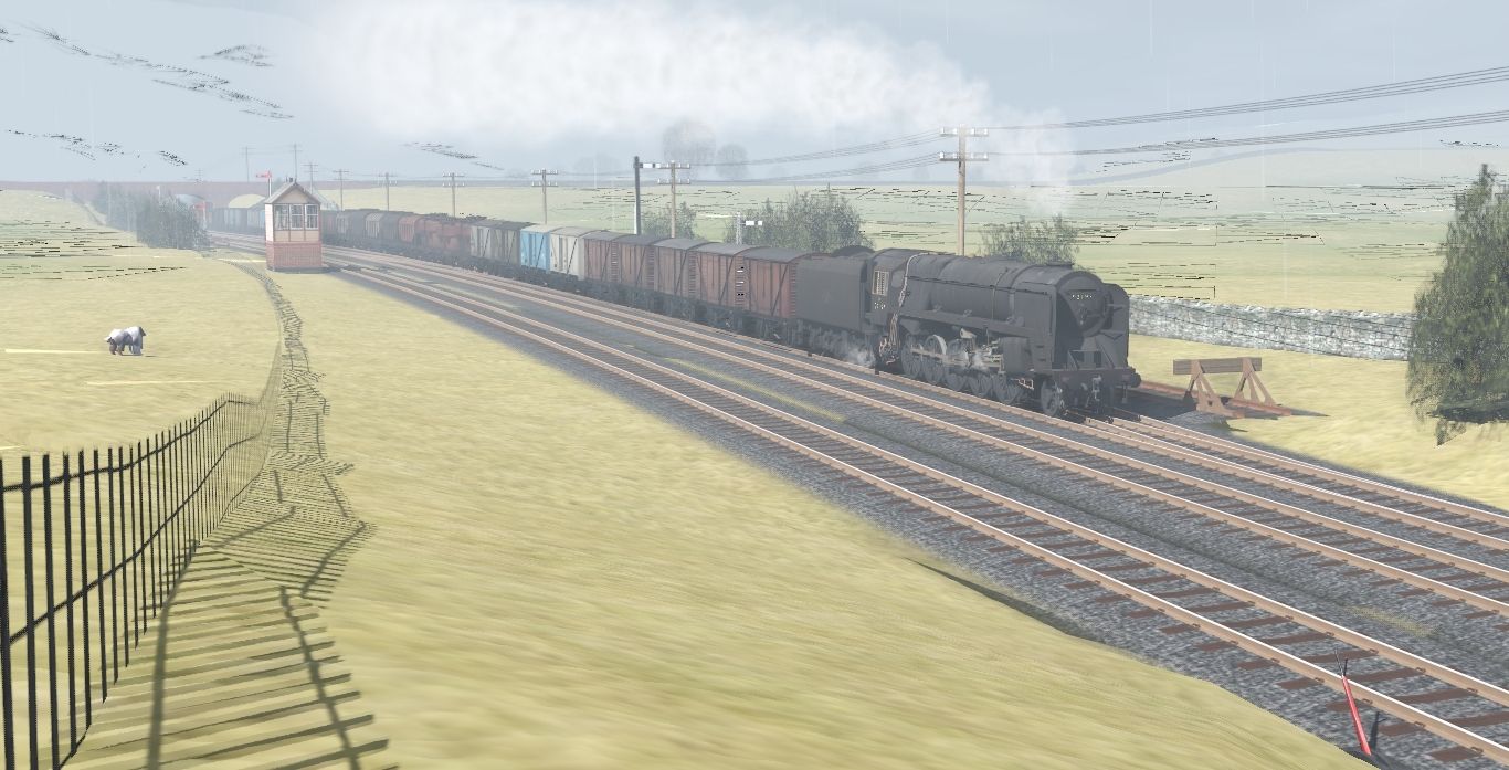 Tags: Trainz Railroad Simulator 2022, Hawes Junction, Vintage Scenes - Early March 1966, BR 9f Double Chimney, BR 9f tender BR1F Late Logo, BR 12T Standard Van Weathered, BR 20T Prestwin Diag 1/274 1960s, BR 20T Prestwin Diag 1/277 1960s, BR 20T LimeHop Diag 271 CGP, BR 20T GrainHop Diag 271 CGP, BR 20T GrainHop Diag 271 CGO, BR 20T GrainHop Diag 275 CGV, BR 20T GrainHop Diag 270 CGO, BR 12T Standard Van Early Weathered