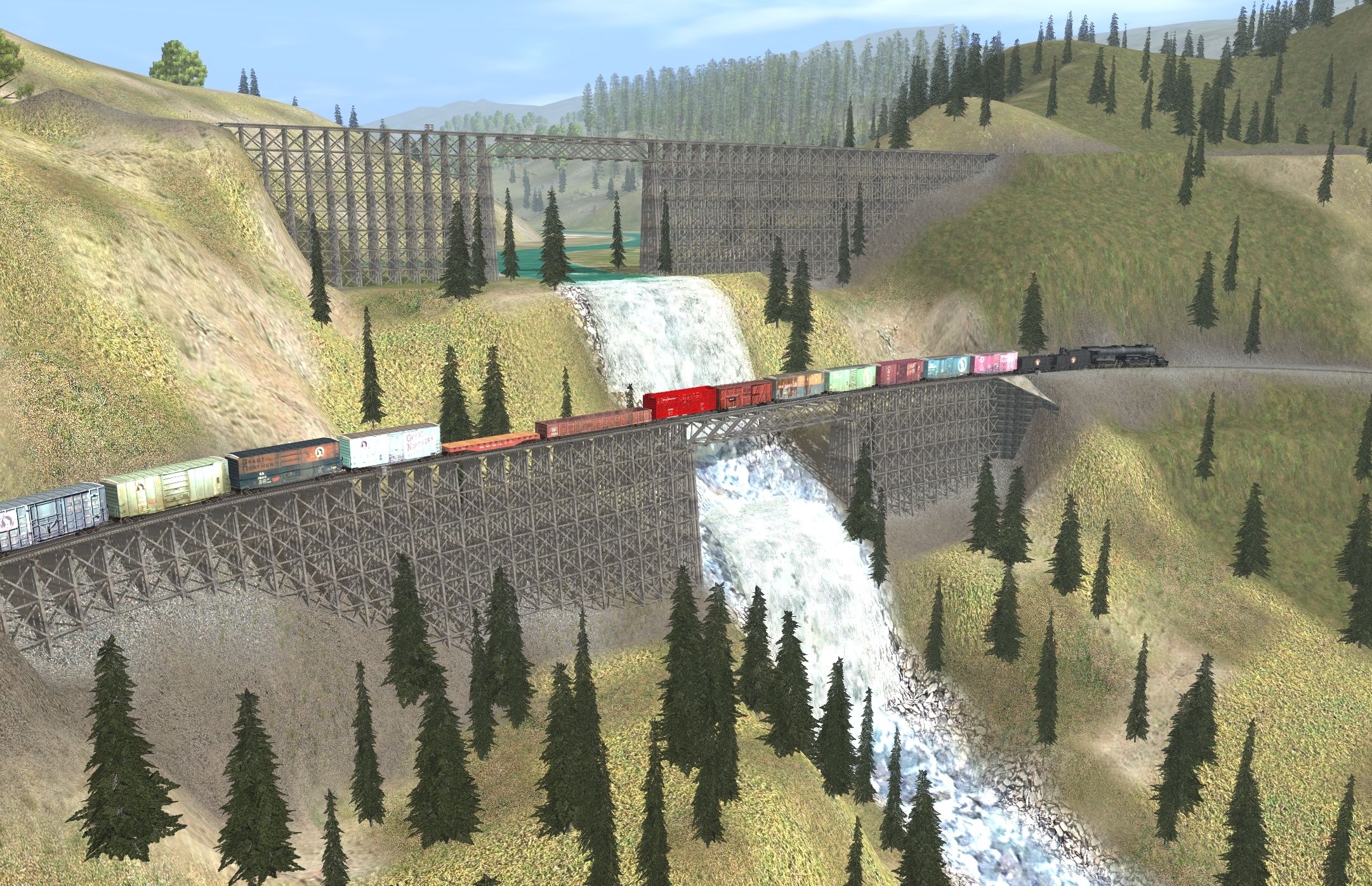 Tags: Trainz: A New Era, 0 Libby to Yaak Mt., Default, GN No. 2009 Y-3 2-8-2, Flatcar50ft Great Northern 3h#, 40ft Hycube GN 6127, Coal 2 Bay Hopper Great Northern #MFX, TUME-300572-Open-Hopper-GN, 40ft Hycube GN 5473, 40ft Reefer Great Northern WFEX w#d, 40ft Hycube GN 5033, 40ft Hycube GN 5010, 60ft Boxcar GN 139504, 40ft Hycube GN 4286