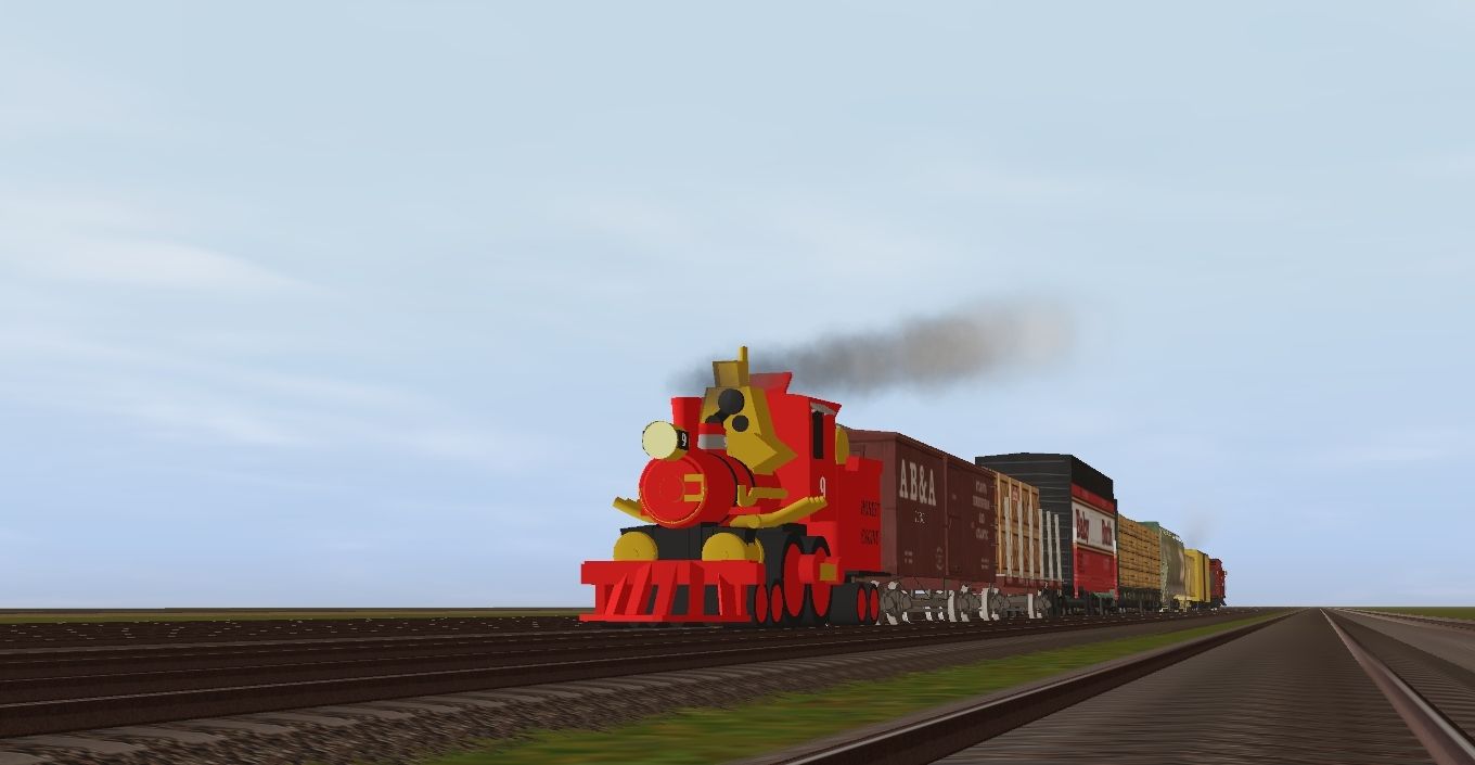 Tags: Trainz Railroad Simulator 2019, Test Track, Honest Engine Locomotive, Honest Engine Tender, AB&A 36' boxcar, AB&A 36' flatcar, Baby Ruth Hi-Cube Boxcar, BN 62Ft. Bulkhead (early era), BN Centerflow Hopper #458341, V & T 34' boxcar #1013 (yellow), Woohoo's Boxcar, 38' X-3 Tank Car STLX, AB&C Woodside Caboose