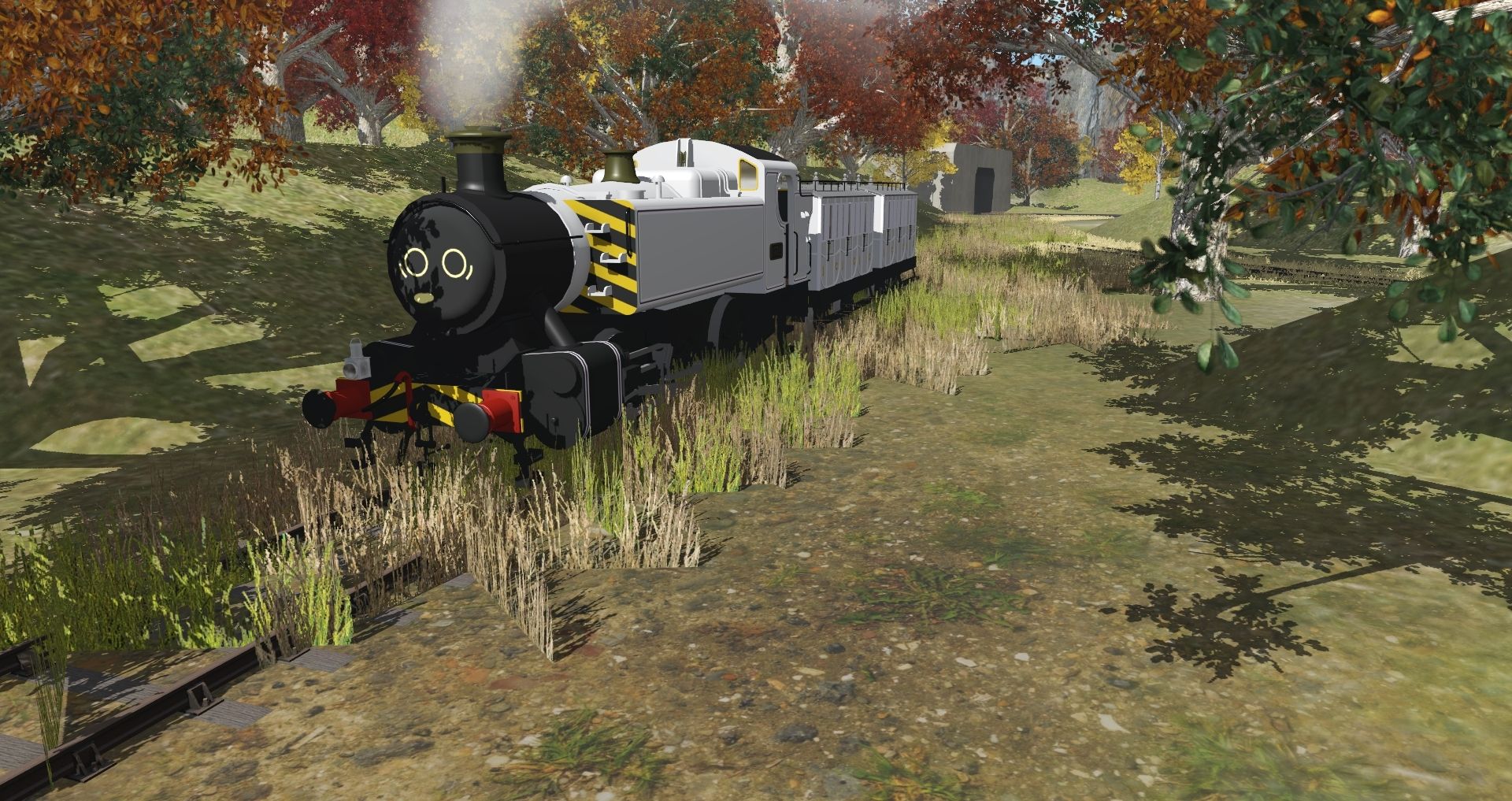 Tags: Trainz Railroad Simulator 2019, Winter's Magic Railway, Winter's Magic Railway - Default, BB3D - RWS GWR 15xx, BB3D - Liverpool & Manchester - Coach, BB3D - Magic Railway - Brake Coach, BR VEV Brown van, BR ex GWR 3 Plank wagon, BR HEA brown, BR TTA BP grey