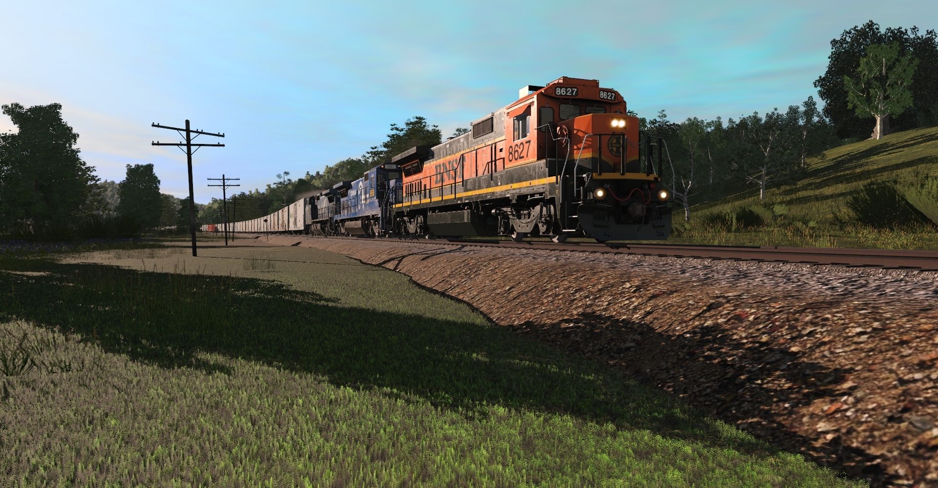 Tags: Trainz Railroad Simulator 2019, The Riverton Subdivison, Default, BNSF B40-8 H1 (early), CSX B40-8 (ex-cr) Patched, CSX Patched C40-8W, C&O Kanawha K-4 Steam, TPIX Mechanical Refrigerator Boxcar Weathered 2, C&O Kanawha K-4 Tender, TPIX 57' Reefer V2, TPIX Mechanical Refrgerator Boxcar, TPIX Mechanical Refrigerator Boxcar Weathered 3, TPIX Mechanical Refrigerator Boxcar Weathered 1