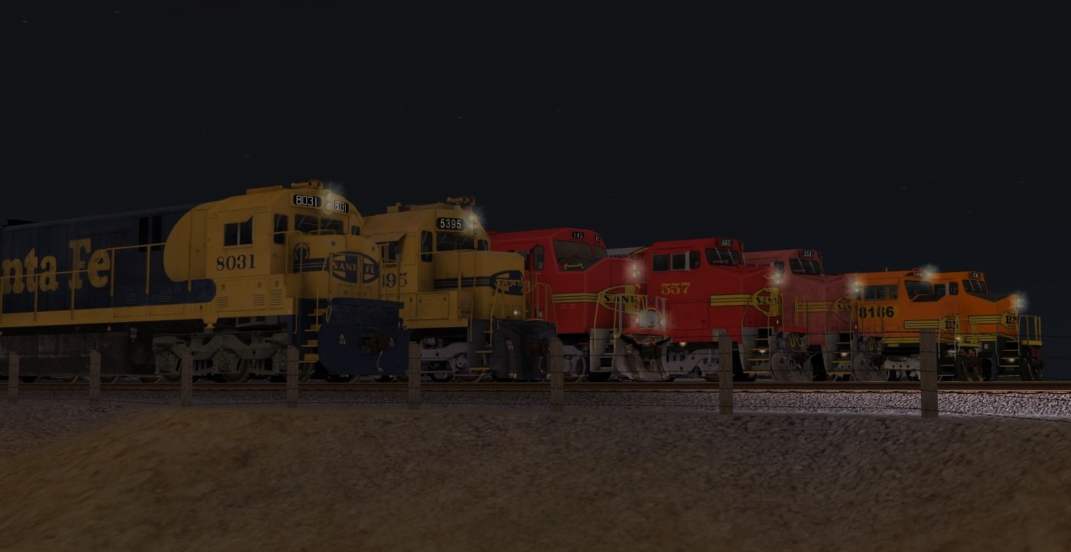Tags: Trainz: A New Era, Mojave Sub Division, ATSF C30-7, ATSF SD45, ATSF GP60M, ATSF B40-8W, ATSF B40-8W BNSF Patch Weathered, BNSF SD60M heritage, BNSF B40-8W