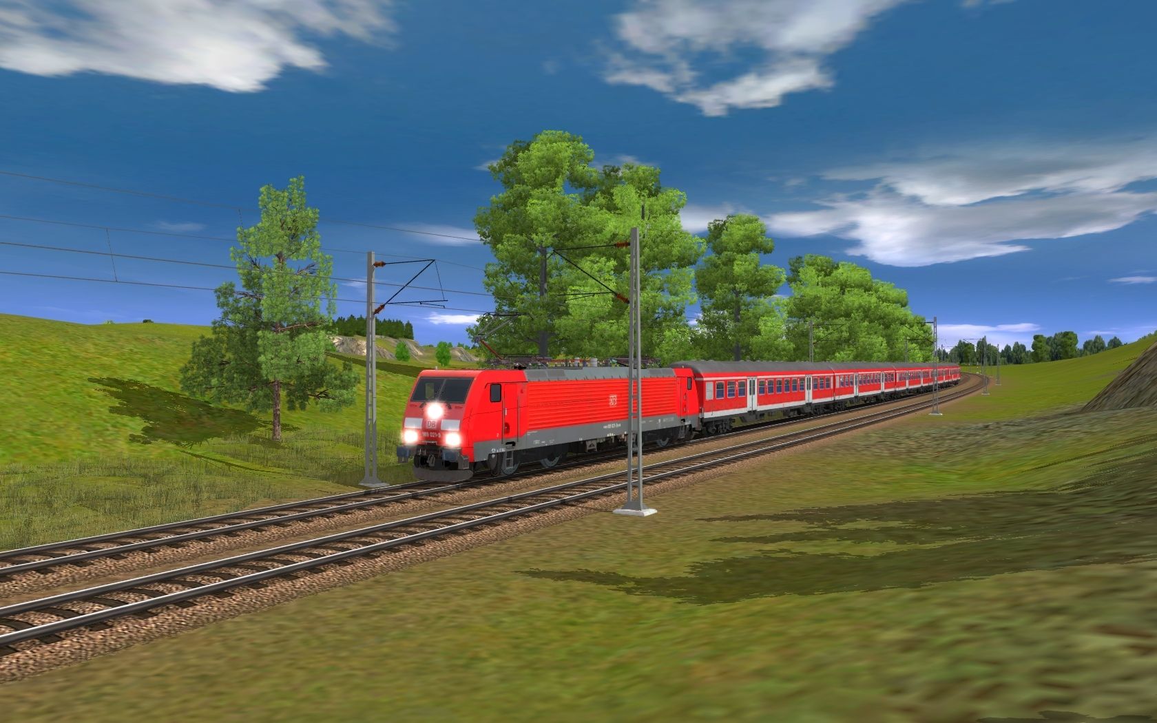 Tags: Trainz: A New Era, AA-Bigtrain Land 28 juli, AA-Bigtrain Land 28 juli - Default, 189 021-9 D-DB, Mak G1206 AVG, WS Br.44 852-3, Bnb720 'Rotling'-coach, DB Donnerb-P, DB Donnerb-AB, DB Donnerb-B, Log Wagon Short Knuckle, WS DB Eanos, WS Br.44 852-3 Tender