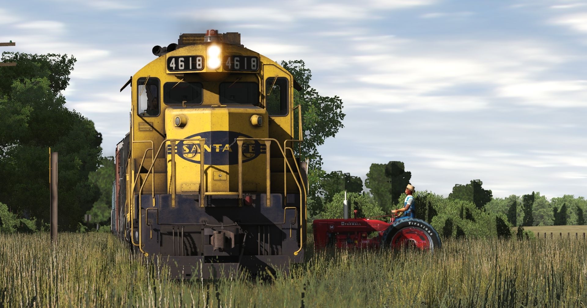 Tags: Trainz Railroad Simulator 2022, Fillmore County MN, Default, Flying Cam PBR, ATSF SD26 (late), SSW SD45T-2, SP SD39, SP PC&F 6033, SP PS 2bay LO hopper, SP P-S 50_6ft Boxcar, SP 50ft Boxcar FMC, SP 50ft Boxcar FMC (Patched), SP 60Ft.9In. woodchip gondola, SP 60ft flatcar