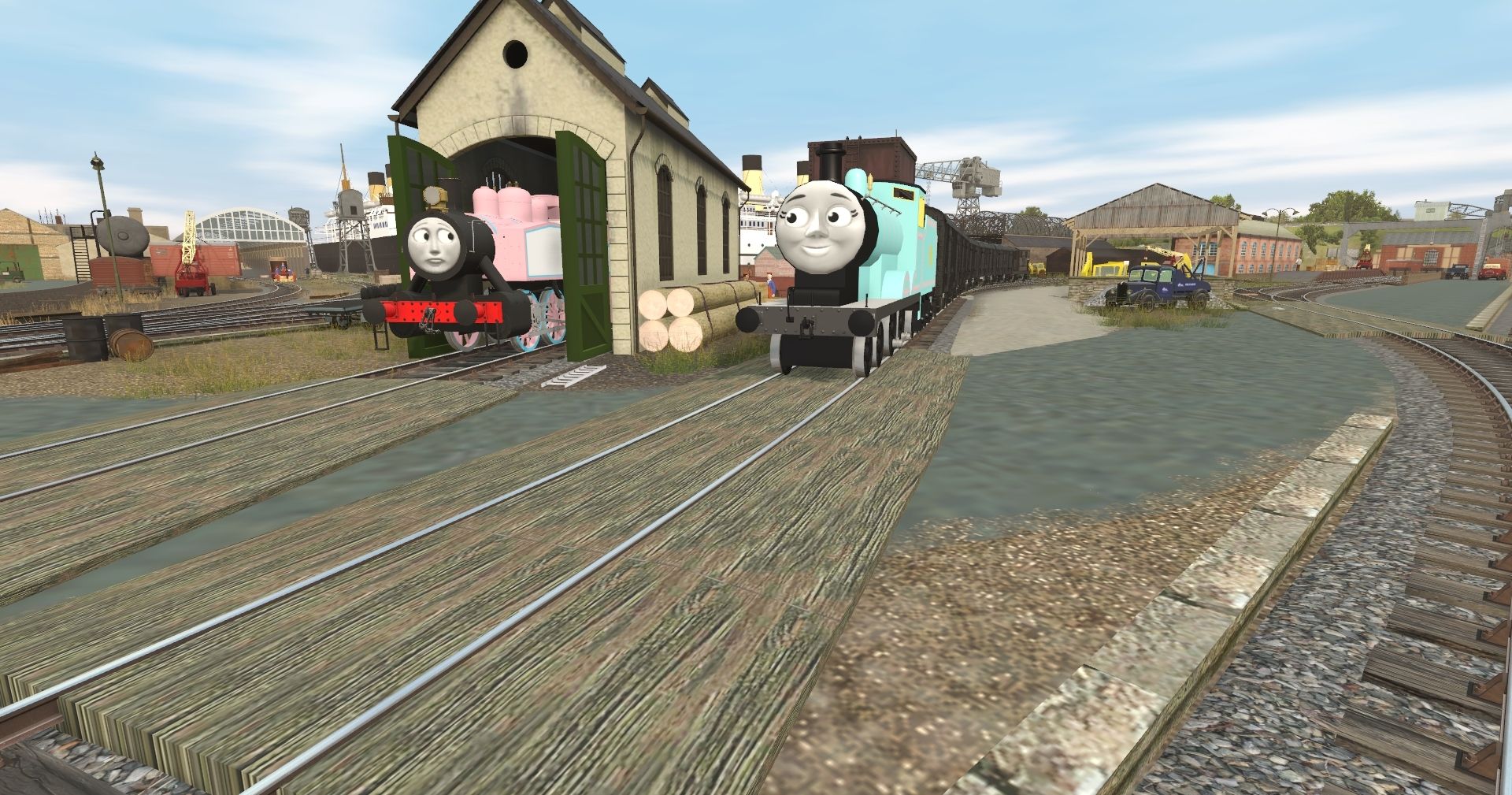 Tags: Trainz Railroad Simulator 2019, Hybrid IOS - BETA 6.5 Patch 1 [19 SP1+] - Release, Default, Flying Cam, TTTE - Millie the Tender Engine (MR), TTTE - Monroe the Dock Tank, TTTE - Millie's Tender (MR), TTTE - SR CCT 4-Wheeled Van (TVS) (Engie's), TTTE - Sodor Brake Van Type 1a (#1TFM)