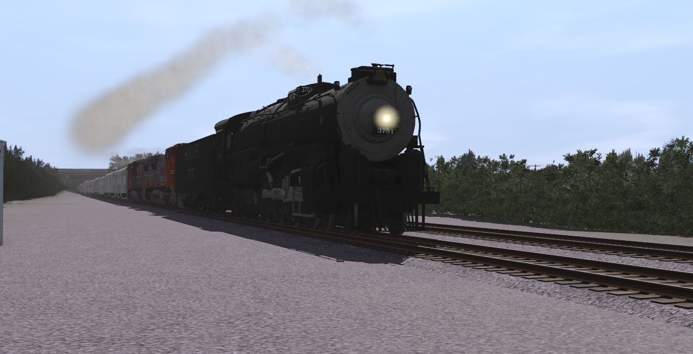 Tags: Trainz Railroad Simulator 2022, La Plata MO, ATSF Scenes - Early September 1992, ATSF #2900 Class Northern, ATSF C40-8W, ATSF SD45-2 blue/yellow warbonnet, ATSF SD45-2B, ATSF C30-7, ATSF SD40-2 2a, Invisible Train, ATSF 3751 Class 4-8-4 Locomotive #3751 Tender, ATSF SS Baggage Car, ATSF Baggage Car 77, ATSF Lightweight ACF 4-4-2 Sleeper