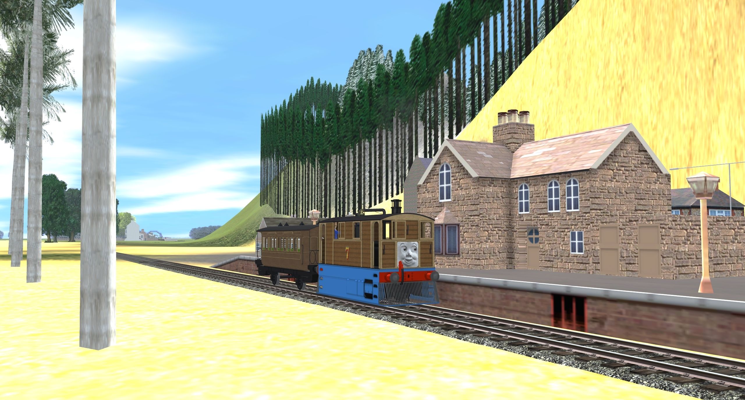 Posted by: marcuschallies | Posted:2024-10-11 03:21:11 Caption: Tags: Trainz: A New Era, Sodor, NWR No.7 Toby (blue), NWR Tramway Coach 'Henrietta' (Sodor)