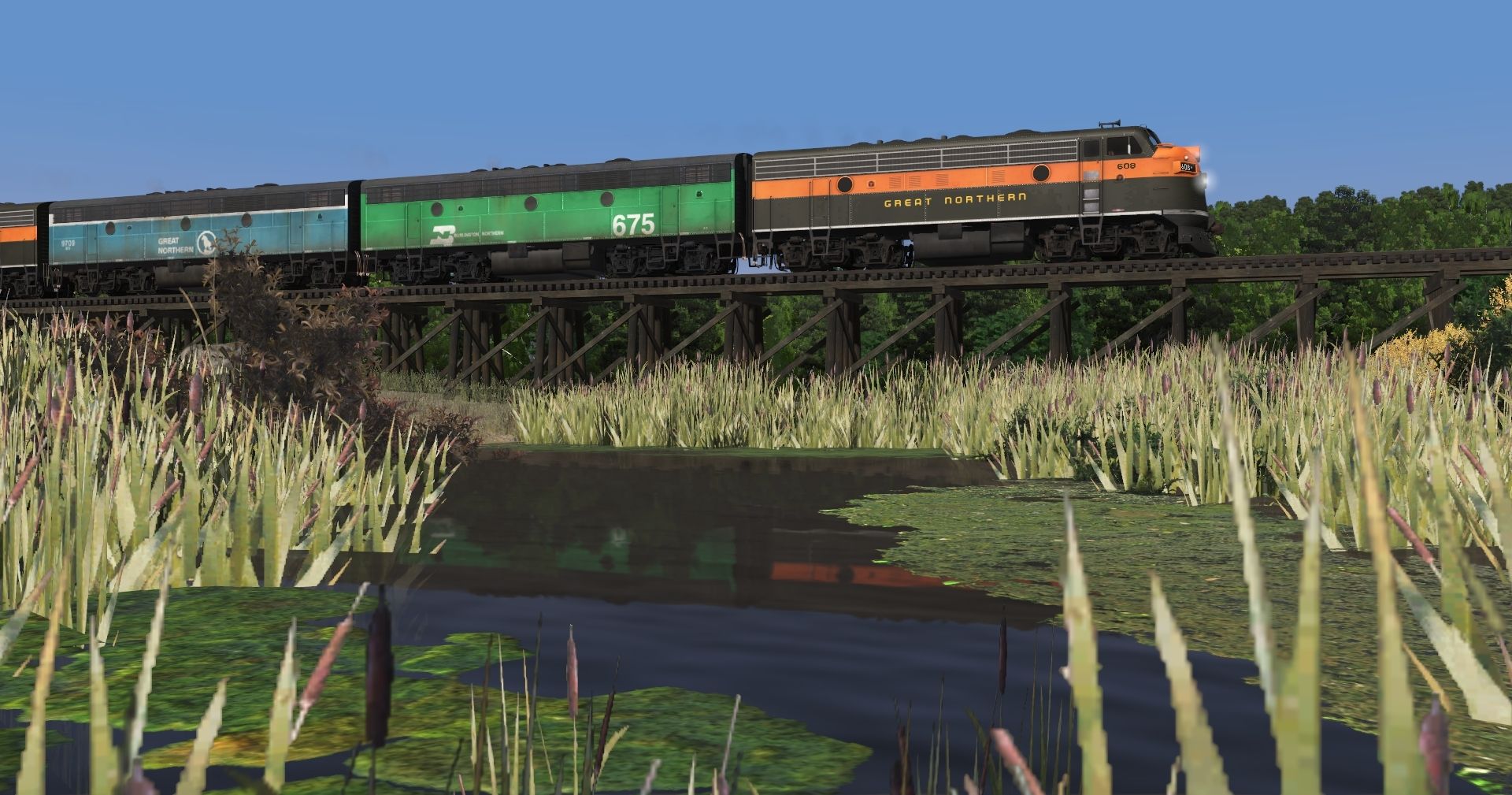 Tags: Trainz Railroad Simulator 2019, BN Oasis V3 Extra Scenic, BN F7B #675, BN (ex-GN) F7B #9709, GN EMD F7A Late Two Light, GN SD9 PHIII Big Sky Blue, NP 50' RBL, NP 40' Hy-Cube Boxcar, BN 50' ACF Boxcar 2, BN 50' RBL ex-CB&Q, BN 50' RBL, 50' Boxcar P&LE 60's, TUME-300552-Covered-Hopper-UP