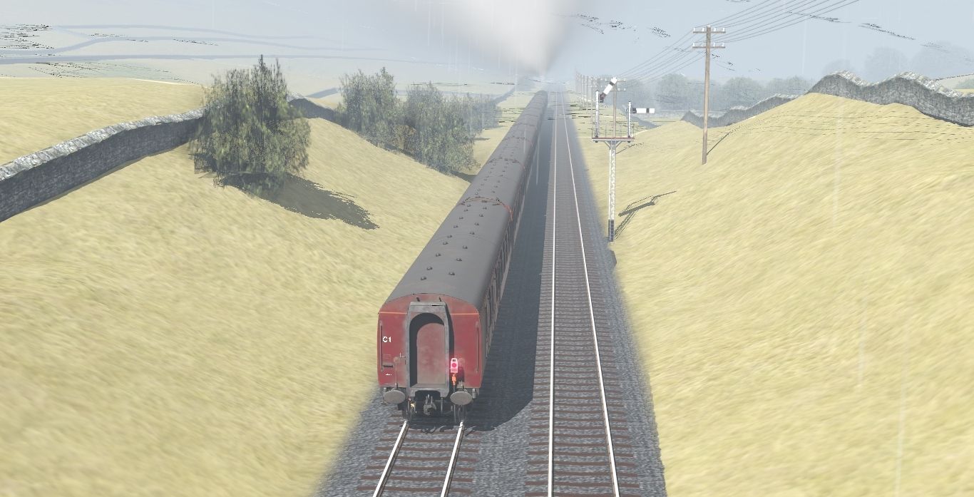 Tags: Trainz Railroad Simulator 2022, Hawes Junction, British Scenes - Mid October 2010, BR Castle double stack, WCR Mk1 BSK, WCR Mk1 FO, WCR Mk1 TSO, BR Mk1 BCK Brown, BR Castle 4000 gal Collett tender.