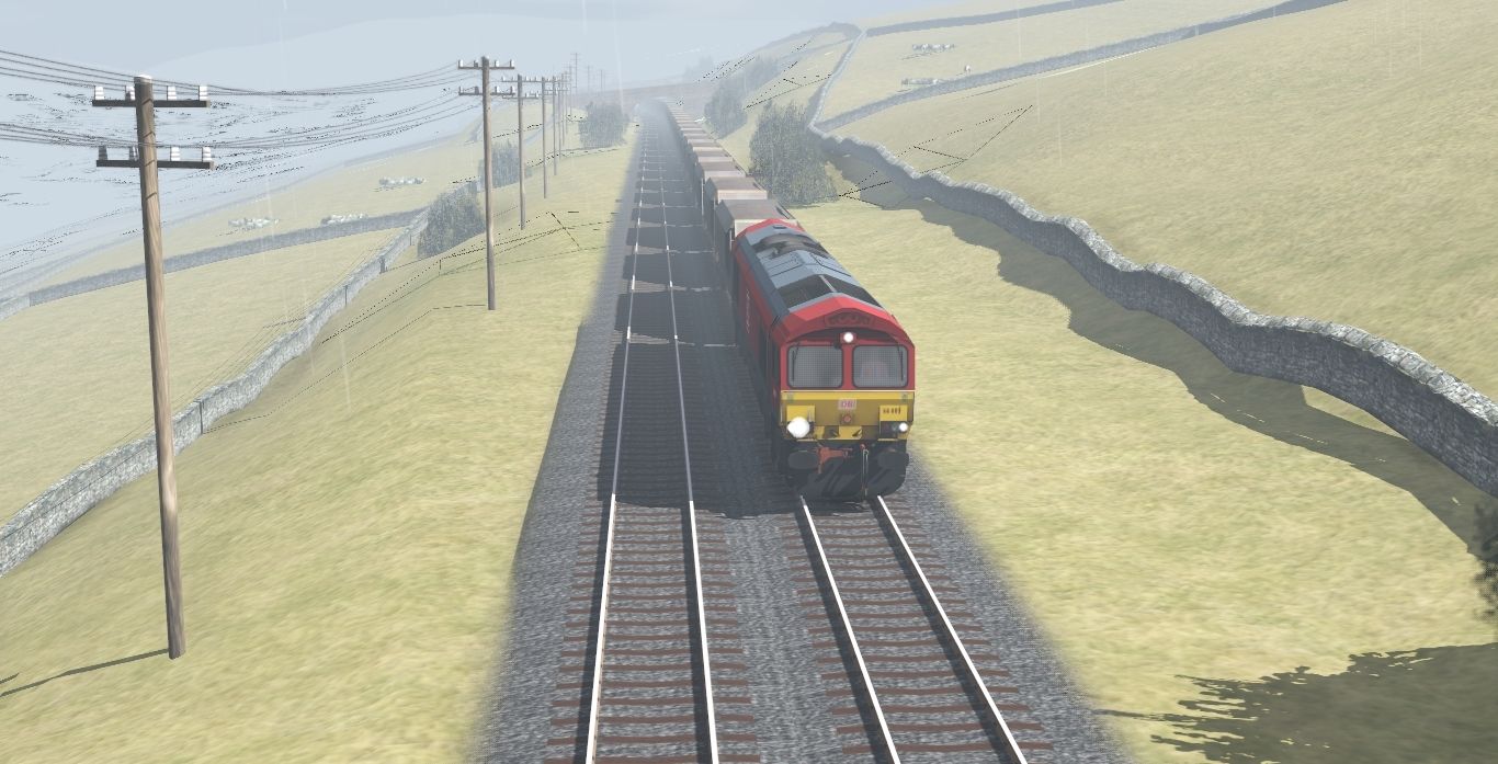 Tags: Trainz Railroad Simulator 2022, Hawes Junction, British Scenes - Mid October 2010, Class 66009 DB Cargo livery, BR JGA Bardon Hopper Reskin