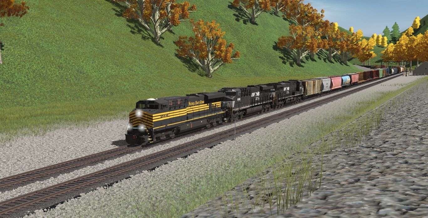 Tags: Trainz Railroad Simulator 2022, Killdane Forest NY, NS Steam Scenes - Mid October 2013, NS 8100 NKP ES44AC, NS ES44AC, CCLE 3160 Class 2-8-2, (A) Loco GP35 - WM 3576-3580, ATSF #314597 3 Bay ACF, ALNX 396107 Cylindrical Hopper, 73ft Centerbeam TTX 3, IBT 50ft Boxcar, RBOX2 50ft Boxcar FMC, 52ft Bulkhead BCIT, LANX #7101 3 bay Evans Hopper