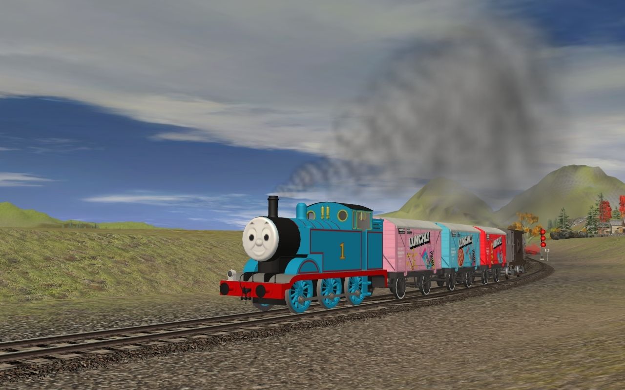 Tags: Trainz: A New Era, Kickstarter County, Thomas the Tank Engine (Learning Segment), Thomas the Tank Engine, Sodor Lunchly Van - Fiesta Nachos, Sodor Lunchly Van - The Pizza, Sodor Lunchly Van - Turkey Stack 'Ems, Sodor Brake Van, Annie (Face Edit), Clarabel (Face Edit)