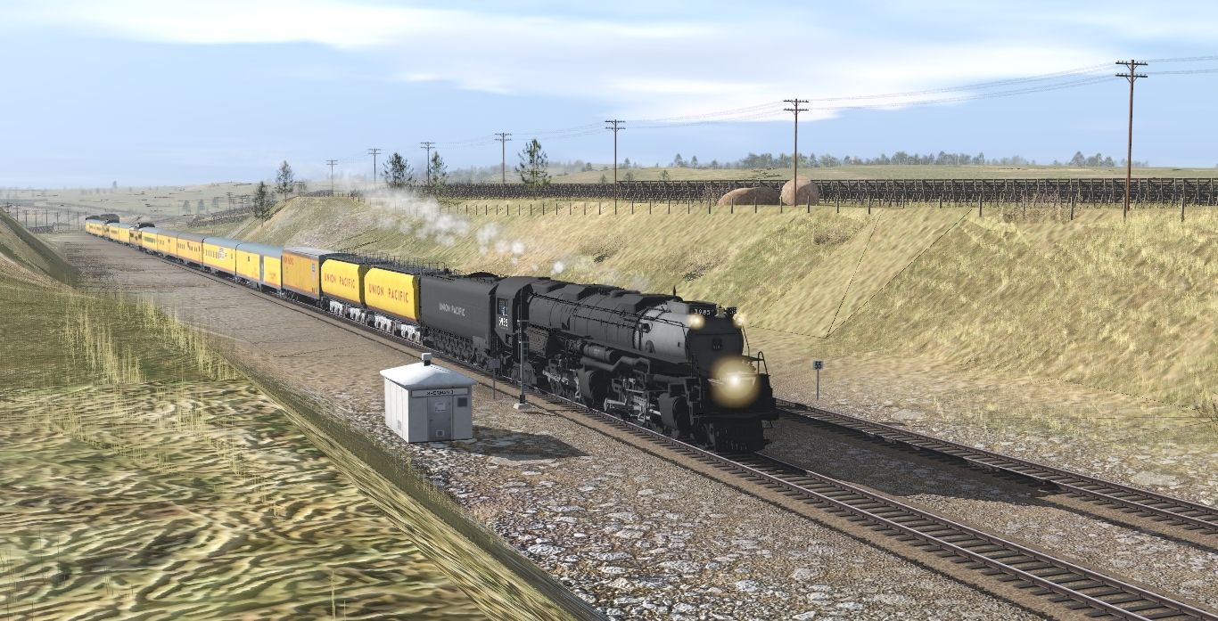 Tags: Trainz Railroad Simulator 2022, Sherman Hill 2.1-A, UP Steam Scenes - Late May 1994, UP JMB Challenger Oil Clean, UP JMB Centipede tender oil Clean, UP Auxiliary Tender, UP Heritage Fleet Stair Car/Box car, up baggage 5772, up baggage dormitory 6002, up Lightweight COLA Baggage Aux Power Dorm, up Lightweight 1947 COSF Baggage Dorm Rebuilt 1942 Baggage, UP coach 5450, UP Lightweight ACF Dome Coach, up baggage 5772