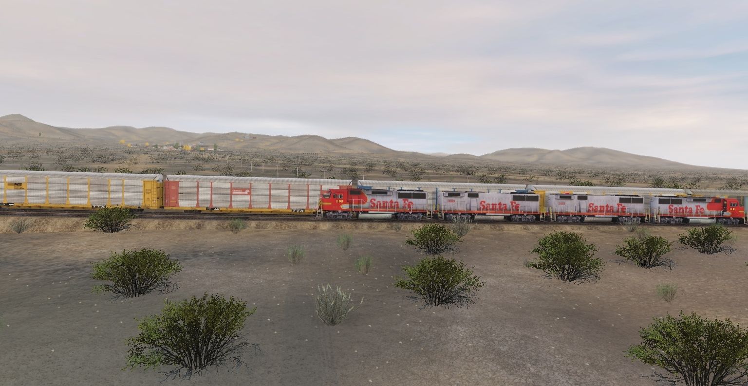 Tags: Trainz Railroad Simulator 2019, WVRR Mainline Ca. 1933 Phase 1 Salt Wells - Monte Cristo, ATSF GP60M, ATSF GP60B, ATSF GP35 Yellow Bonnet (TS12), ATSF C30-7, 89Ft Autorack GT, 89Ft Autorack NS, 89Ft Autorack KCS, 89Ft Autorack UP 3, 89Ft Autorack SP, 89Ft Autorack UP 2, 89Ft Autorack CN