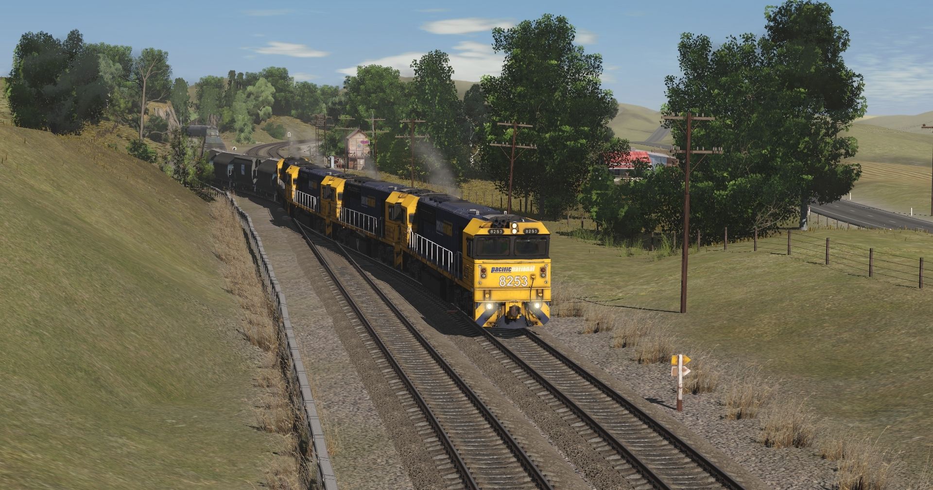 Tags: Trainz Railroad Simulator 2022, NSW Donnybrook Branch extended, Default, Flying Cam PBR, PN 82 22+, PN 82 8239 22+, NSW NGKF Grain Hopper, NGXH Grain Hopper V2 - Grey, NSW Freight Rail NGHF Grain Hopper, Manildra Group MGFH Flour Hopper