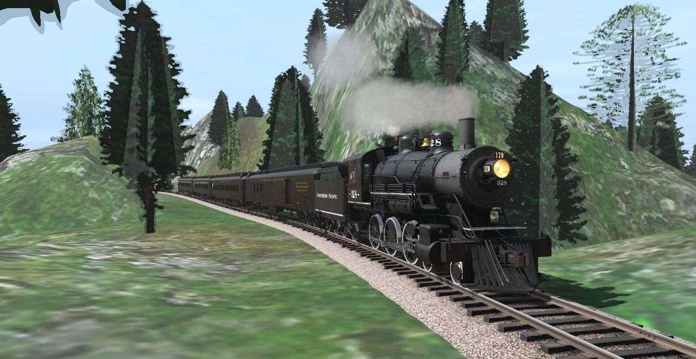 Tags: Trainz Railroad Simulator 2019, Glacier Park (Entire Route), Northwest Steam Spectacular, NP 328, NP 328 4E Tender, NP 1480 Series Baggage-Dorm, NP 1170 Series Coach - 1940s, NP 1170 Series Coach