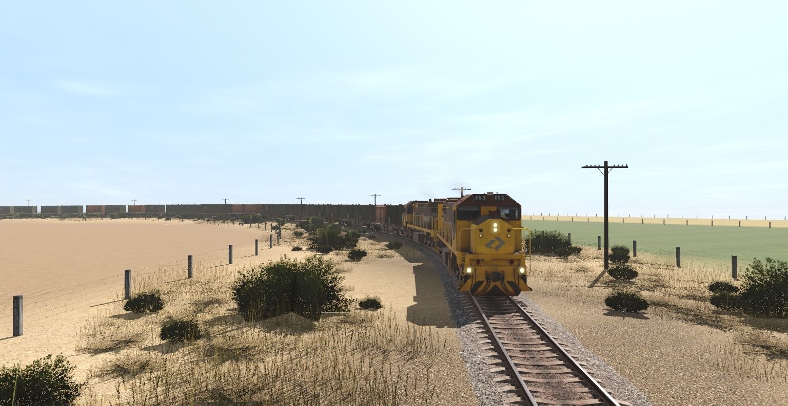 Posted by: boris800 | Posted:2024-10-20 11:03:59 Caption: Tags: Trainz Railroad Simulator 2022, South Australia Country Division, Country Rail Traffic, AUR X S3, Aurizon AQNY flat 2015+