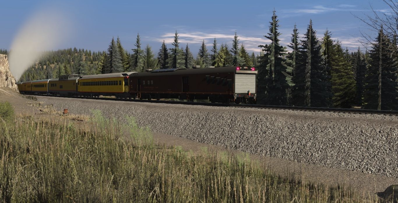 Tags: Trainz Railroad Simulator 2022, BN Oasis V3, UP Steam Scenes - Early September 2005, UP SD70M Flag, EMD SD70ACE WP #1983, UP JMB Challenger Oil Clean, JRPX Inspection Car, UP P70 Observation #3733, UP Lightweight ACF Dome Diner, UP coach 5450, up Lightweight 1947 COSF Baggage Dorm Rebuilt 1942 Baggage, up baggage 5772, up baggage dormitory 6002, up baggage 5772