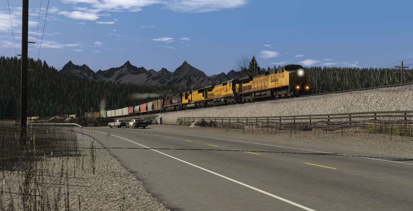 Tags: Trainz Railroad Simulator 2022, BN Oasis V3, UP Steam Scenes - Early September 2005, UP Dash 9-44CW (ex-CNW), UP C40-8, UP letters painted SD70M, SP AC4400CW #107, Great Northern Class S-2 4-8-4, JR Evans Hopper MGCX, UP 2 Bay Hopper ACF 2971 CH-100-43 ex-ROCK, ATSF #314597 3 Bay ACF, ALNX 396107 Cylindrical Hopper, CC 15180 LO 4750 3 Bay Covered Hopper, IBT 50ft Boxcar