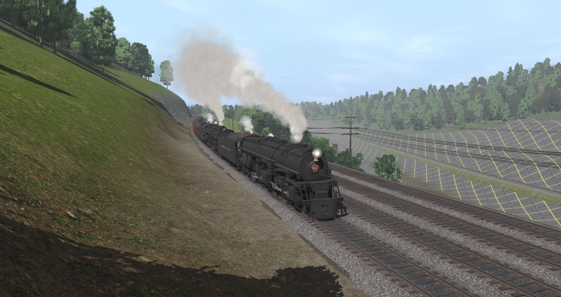 Tags: Trainz Railroad Simulator 2022, Pennsy Lines- Pitts to Philly and More WIP 22E1, K&L west slop 1, PRR FG-1 Articulated Engine, PRR FG-1 Articulated Tender, PRR H21a Hopper, PRR GLa Hopper