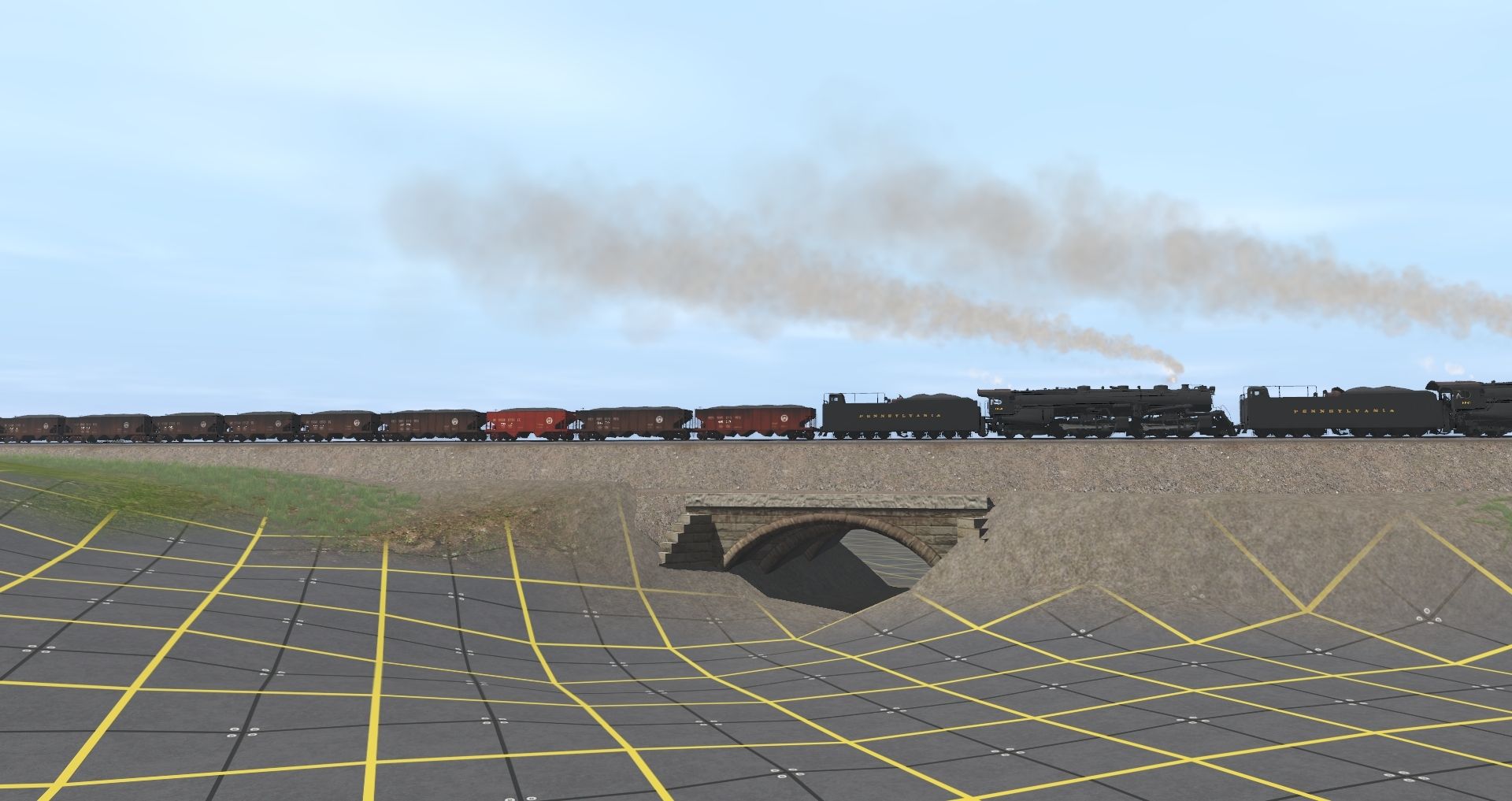 Tags: Trainz Railroad Simulator 2022, Pennsy Lines- Pitts to Philly and More WIP 22E1, K&L west slop 1, PRR FG-1 Articulated Engine, PRR FG-1 Articulated Tender, PRR H21a Hopper, PRR GLa Hopper