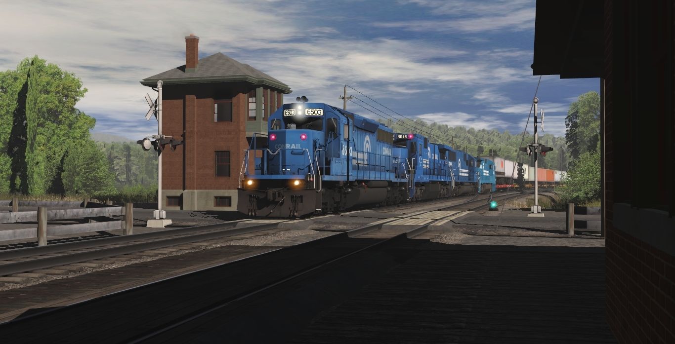 Tags: Trainz Railroad Simulator 2022, Eastern Mountain Route, Conrail Scenes - Early October 1992, CR SD40-2, CR C39-8 late, CR SD50 (Late) V1, CR 8-40b #5083, AMTK F40PH ph3 (early), AMTK F40PH ph3, TTX Patched 89ft TOFC Flatcar, MEC 89ft AP TOFC Flatcar ex-PW, TM 89ft AP TOFC Flatcar, TTX 89ft PS AP TOFC Flatcar PSH10A (Brown), FEC Brown 89ft TOFC Flatcar