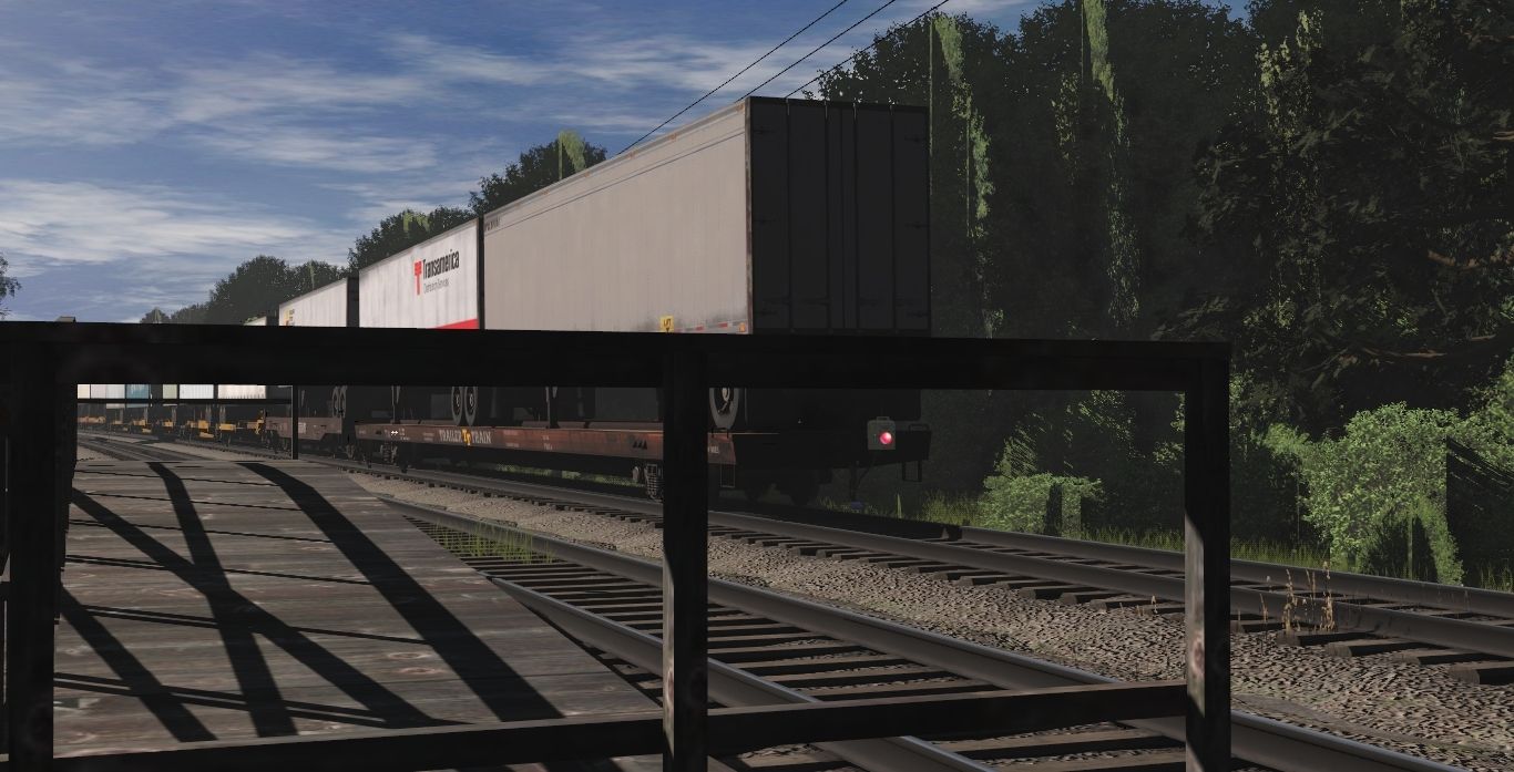 Tags: Trainz Railroad Simulator 2022, Eastern Mountain Route, Conrail Scenes - Early October 1992, CR 8-40b #5083, CR SD50 (Late) V1, CR C39-8 late, CR SD40-2, AMTK F40PH ph3 (early), AMTK F40PH ph3, FRED SJVRR, TTX 89ft PS AP TOFC Flatcar PSH10A (Brown), Norfolk Southern 50ft TOFC Flat, Spinecar B Unit, Spinecar C Unit