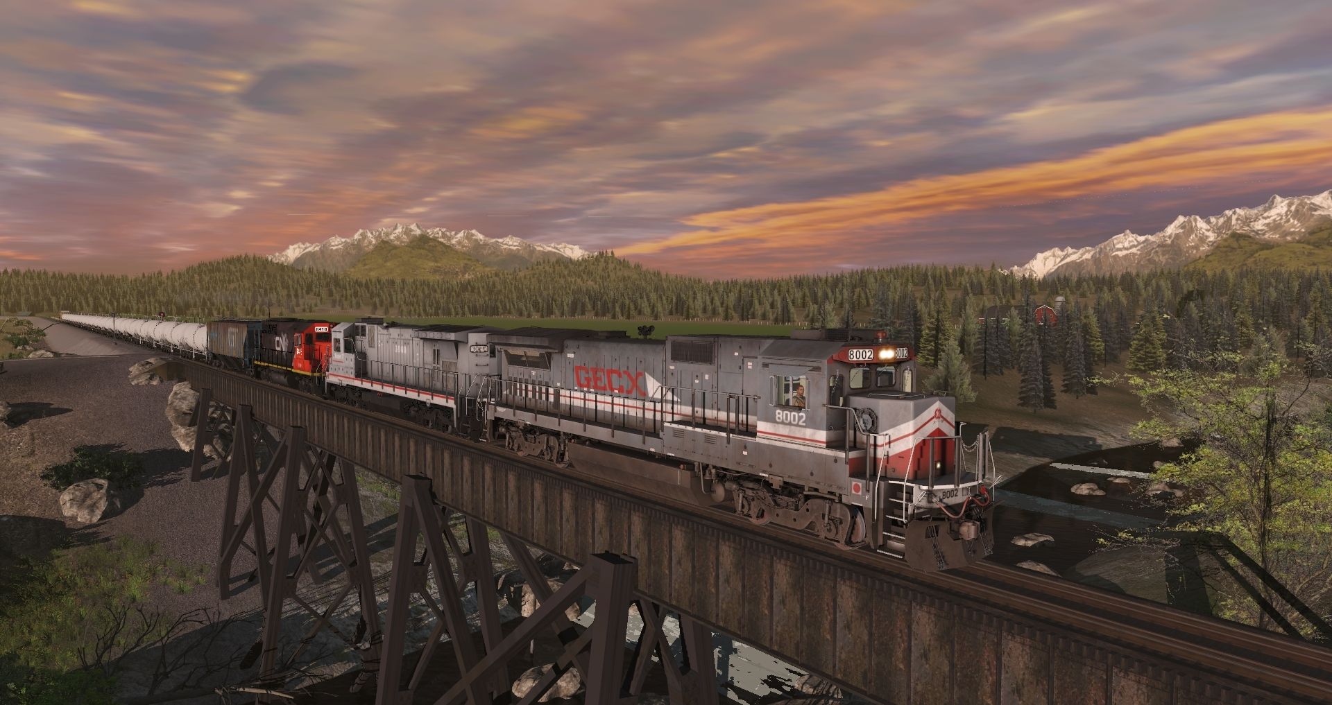 Tags: Trainz Railroad Simulator 2019, BN Oasis V3, BN Oasis V3 - Default, GECX B40-8, GECX C30-S7 #3000, GP40-2 CN exGTW, GTW Trinity 3 Bay Hopper #138274, JRPX 20800 gal tank car, KCS 60ft HC Boxcar