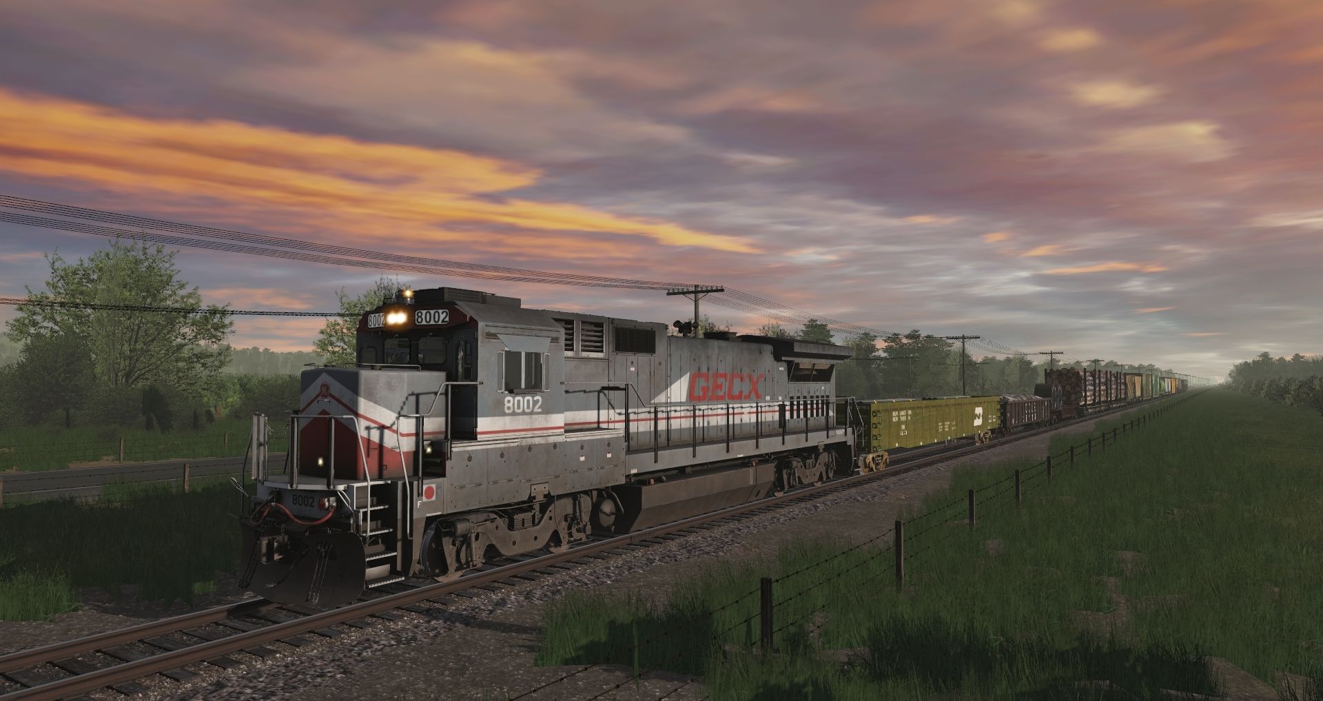 Tags: Trainz Railroad Simulator 2019, Sweet Carolina Release, Default, GECX B40-8, Gondola 65 ft Mill BN weathered DES, Gondola 50ft CCLE #bM, CR Depressed Flatcar, CP 60ft flatcar, CHTT 2 bay Trinity hopper #200577, BN 60ft Thrall Boxcar, GBCX Cylindrical Hopper, GACX 2 bay Trinity hopper #3028, B&O 50' PS-1, CAGX Trinity 3 Bay Hopper
