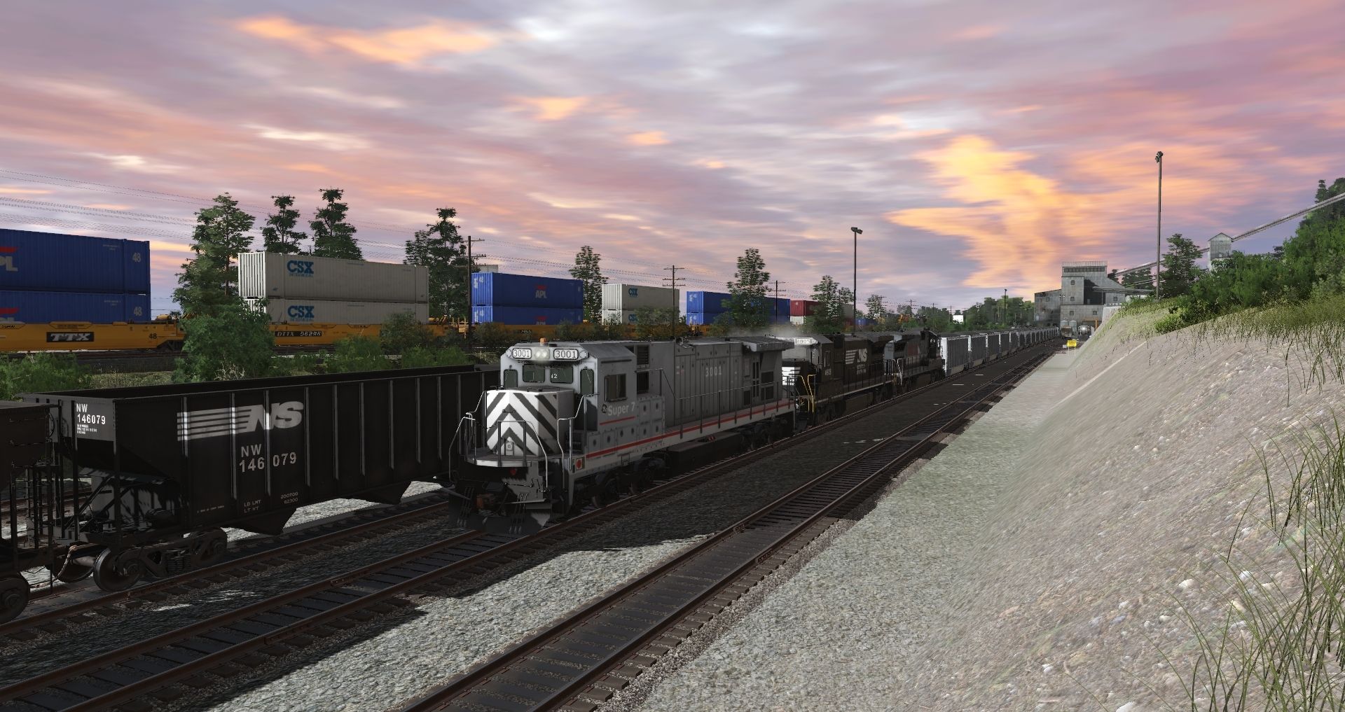 Tags: Trainz Railroad Simulator 2019, Diamond River Mining Co. TRS19 mod., DRM Working the Interchange - 14:57 18/02/2024 - 18:11, GECX C30-S7 #3001, NS B40-8 HH, GECX B40-8, KCS SD40-2 123 #912 Late, CSX ES44AH Early, NS SD40-2 1625-1635 TS19 4, UP C45AH T4, NS RPU6 Slug 870-888 3, UP SD70ACe Heritage WP Early, NS C40-9W 9250-9256 (OLS) 1, DRMX SW1500 Diamond River