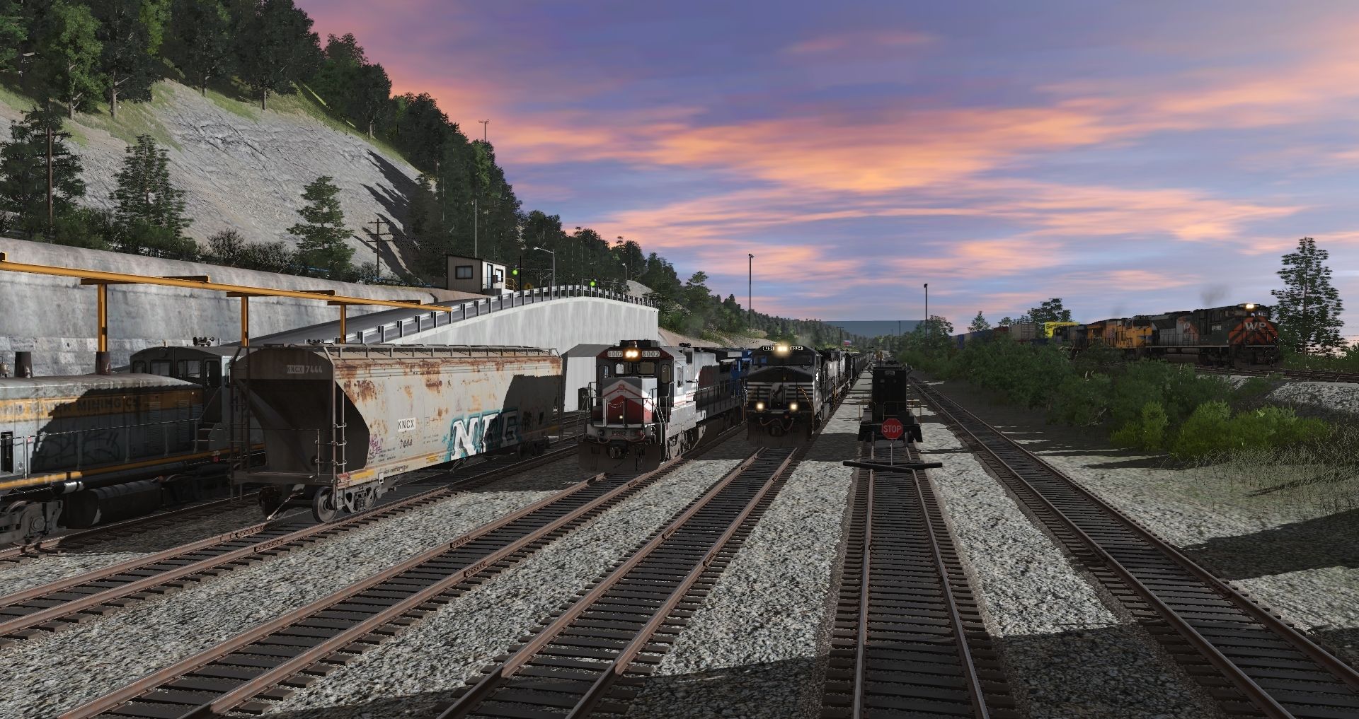 Tags: Trainz Railroad Simulator 2019, Diamond River Mining Co. TRS19 mod., DRM Working the Interchange - 14:57 18/02/2024 - 18:11, DRMX SW1500 Fairview, DRMX SW1500 Diamond River, GECX B40-8, NS C40-9W 9250-9256 (OLS) 1, CR B40-8, NS RPU6 Slug 870-888 3, UP SD70ACe Heritage WP Early, NS SD40-2 1625-1635 TS19 4, UP C45AH T4, CSX ES44AH Early, NS SD70ACe Heritage WAB