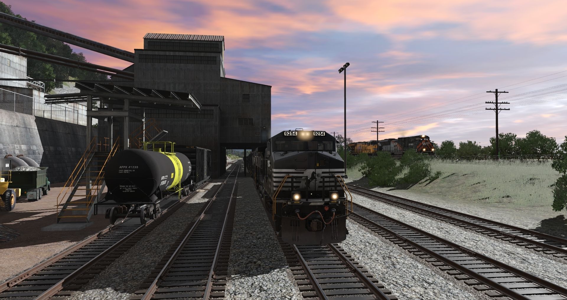 Tags: Trainz Railroad Simulator 2019, Diamond River Mining Co. TRS19 mod., DRM Working the Interchange - 14:57 18/02/2024 - 18:11, NS C40-9W 9250-9256 (OLS) 1, NS RPU6 Slug 870-888 3, NS SD40-2 1625-1635 TS19 4, UP SD70ACe Heritage WP Early, UP C45AH T4, DRMX SW1500 Diamond River, DRMX SW1500 Fairview, NS SD70ACe Heritage WAB, NS C40-9W (Primer) 9887-9978 1, KCS SD40-2 123 #912 Late, AFPX 20800 gal tank car
